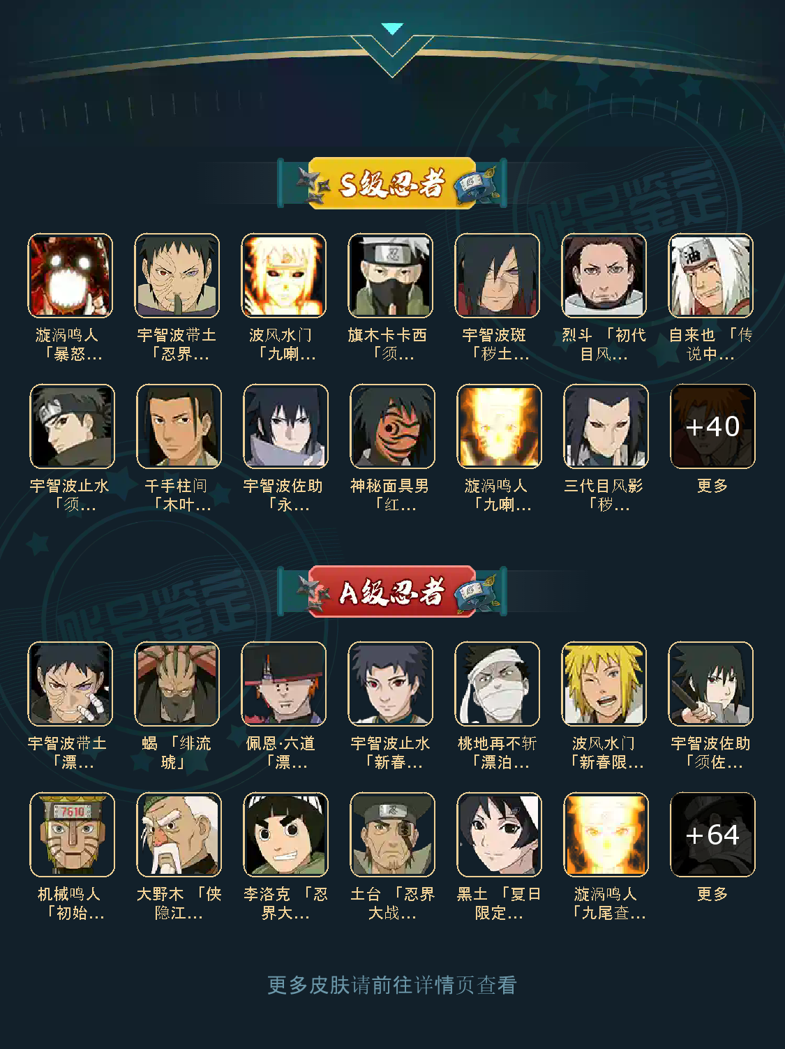 53S 75A 371忍者 宇智波止水「新春限定」/桃地再不斩「漂泊武士」/蝎 「绯流琥」/佩恩·六道 「漂泊浪客」/波风水门「新春限定」/宇智波带土 「漂泊浪客」/烈斗 「初代目风影」/神秘面具男 「红夜之刃」/宇智波斑 「秽土转生·解」/自来也 「传说中的三忍」/波风水门「秽土转生」/千手柱间 「木叶创立」/宇智波止水 「须佐能乎」/漩涡鸣人 「九喇嘛连结」/漩涡鸣人 「暴怒·第六尾」/宇智波斑「白面具」/宇智波带土「忍界大战」/三代目风影 「秽土转生」/宇智波佐助 「永恒万花筒」/佩恩·天道「超」/旗木卡卡西 「须佐能乎」/波风水门 「九喇嘛连结」