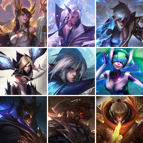 【重要皮肤】海珀利安小队X09星环灵风迦娜至臻 神凰行者烈羽焰凰霞至臻 女帝黛安娜至臻 战斗学院蕾欧娜至臻 魔女婕拉至臻 魔女乐芙兰至臻 未来战士卢锡安至臻 真实伤害亚索至臻 真实伤害赛娜至臻 星之守护者索拉卡至臻 灵能特工伊泽瑞尔至臻 源计划逆流塞拉斯至臻 源计划阴劫至臻 神龙尊者炎龙瑟提至臻 黑夜使者凯隐至臻 神龙尊者均衡之龙沃利贝尔至臻 焰执事布兰德至臻 KDA二代卡莎至臻 KDA一代卡莎至臻 KDA伊芙琳至臻 KDA伊芙琳2022至臻 KDA阿卡丽至臻 烈焰美人薇恩至臻 魅惑女巫厄运小姐至臻 真实伤害奇亚娜至臻 真实伤害奇亚娜2022至臻 绒毛菲兹至臻 绒毛菲兹2022至臻 玉剑传说武剑仙至臻 玉剑传说武剑仙2022至臻 腥红之月亚托克斯至臻 腥红之月亚托克斯2022至臻 未来战士锤石至臻 未来战士锤石2022至臻 黑夜使者李青至臻 黑夜使者李青2022至臻 海克斯科技雷克顿 海克斯科技克格莫 海克斯科技斯维因 海克斯科技崔丝塔娜 水晶圣骑艾希 永恒之森奥恩 零之枪骑赫卡里姆 摄魂使者薇恩 新创战纪希维尔 胜利剑圣易 胜利女神娑娜 胜利女神希维尔 胜利之王泰达米尔 胜利巨口克格莫 荣誉使者玛尔扎哈 电玩女神厄运小姐 电玩勇者锐雯 玉剑传说无影 玉剑传说舞剑仙 神凰行者幽羽玄凰萨勒芬妮 玉剑传说无劫 银龙裁决泰隆 神龙烈焰金克丝 北辰之威内瑟斯 美猴王孙悟空 定海神珍孙悟空 广寒仙子嫦娥 虎痴之拳蔚 张辽文远 王国机神青龙德莱文 王国机神朱雀蕾欧娜 王国机神苍狼瑟提 王国机神白虎贾克斯 福牛守护者厄斐琉斯 胜利女神瑟庄妮 胜利女神奥莉安娜 胜利枪神卢锡安 胜利之剑亚托克斯 觅心女王艾希 幽梦玫瑰泰隆 北极星神黛安娜 寒冬精灵璐璐 雪球也能爆炸吉格斯 狂心冰王图奇 魄罗骑士瑟庄妮 夺命美人卡特琳娜 平安夜女神娑娜 圣诞糖果棒厄运小姐 魅惑女巫厄运小姐 泳池派对普朗克 泳池派对奥莉安娜 泳池派对黑默丁格 泳池派对塔莉垭 泳池派对厄运小姐 泳池派对格雷福斯 泳池派对李青 泳池派对蕾欧娜 泳池派对雷克顿 御星魔矢艾希 送披萨的小姐姐希维尔 克格汪 FPX薇恩 iG卡莎 SSG霞 SSG伊泽瑞尔 SKTT1娜美 SKTT1瑞兹 SKTT1伊莉丝 SSW锤石 SSW辛吉德 SKTT1劫 暗杀星奥莉安娜 暗杀星蒙多 暗杀星努努和威朗普 Fnatic迦娜 冰雪节辛吉德 防暴士兵辛吉德 防暴天使凯尔 冠军典狱长锤石 冠军之刃锐雯 冠军之刃锐雯2016 冠军之血希瓦娜 冠军之志瑞兹 鬼影森森茂凯 鬼影重重魔腾 惊悚派对阿木木 南瓜头费德提克 女猎手希维尔 圣诞开心鬼提莫 无头骑士赫卡里姆 喜庆之树茂凯 邪恶圣诞老人维迦 雪装奈德丽 勇者阿狸 征服者韦鲁斯 暗影沃里克 冠军之箭艾希 阿木木主人不要我了 波比的巧克力工坊 都铎王朝图奇 十五周年纪念希维尔 十周年纪念安妮 源代码乐芙兰 神凰行者瑞羽圣凰艾尼维亚 DJ娑娜 绝息圣堂洛