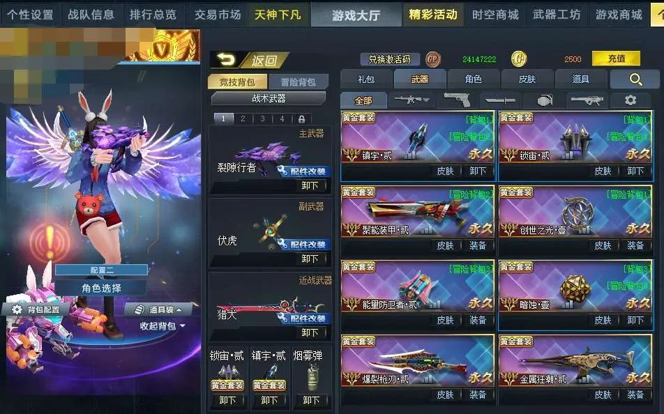 满级血肉傀儡!四大京剧面具(变异体)!飞梭贰!无暇壹!魔方二!命运透视(骰子),聚能二阶,双子雷均二阶,双凝视(有重要配件),伏虎,裂隙,盖亚,满配蛮牙幻锋幻彩帝王夜宵猎犬幻影侍卫冬日温情等等满配亦正亦邪武器,裁决(青龙皮肤)无限ex,终焉,AK天神