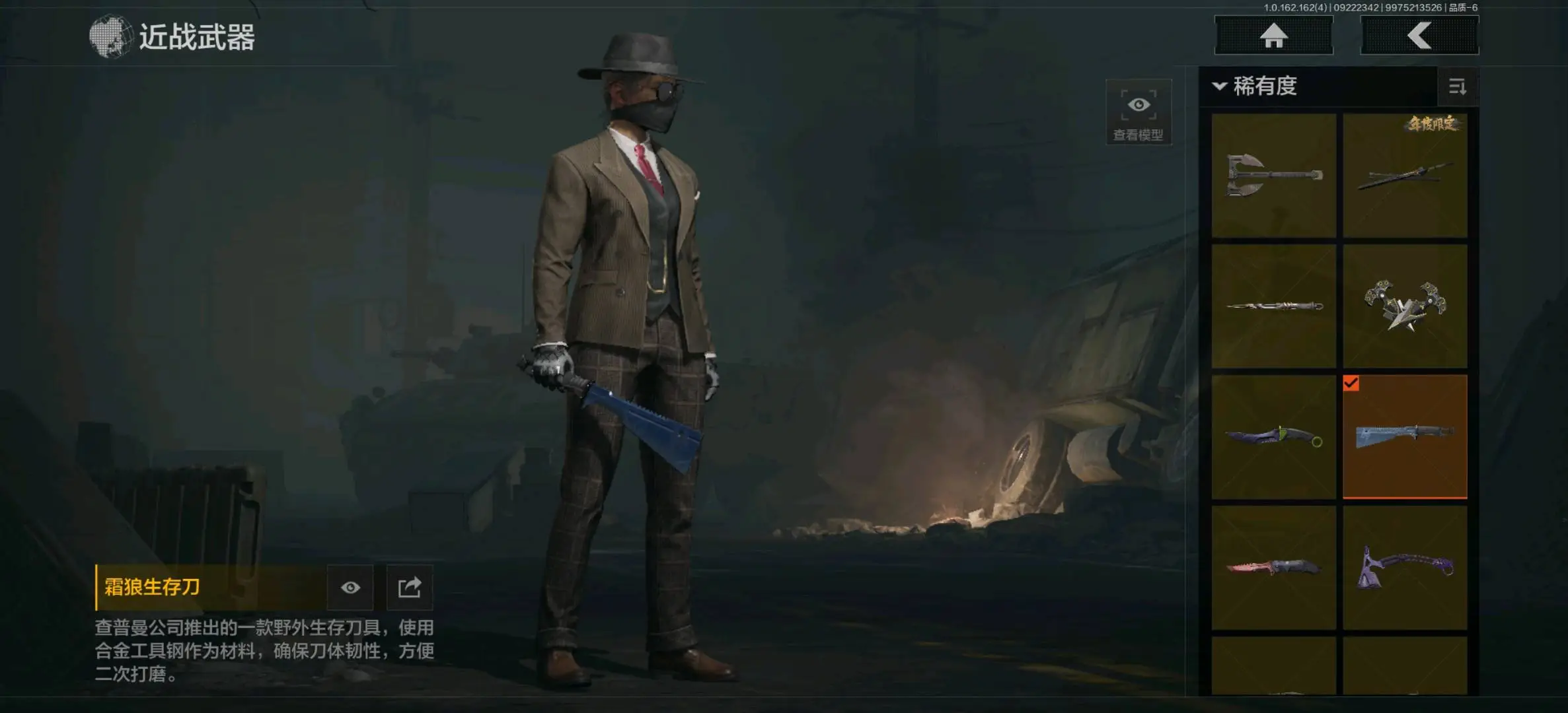 不屈烈怒,三尺万仞战术剑,盘牙彻甲短刃,寒牙手刺,急袭弯刀,霜狼生存刀,瑞兔折刀,冰海战斧,鲨鱼刀,突击匕首,工兵铲,来战开山刀;