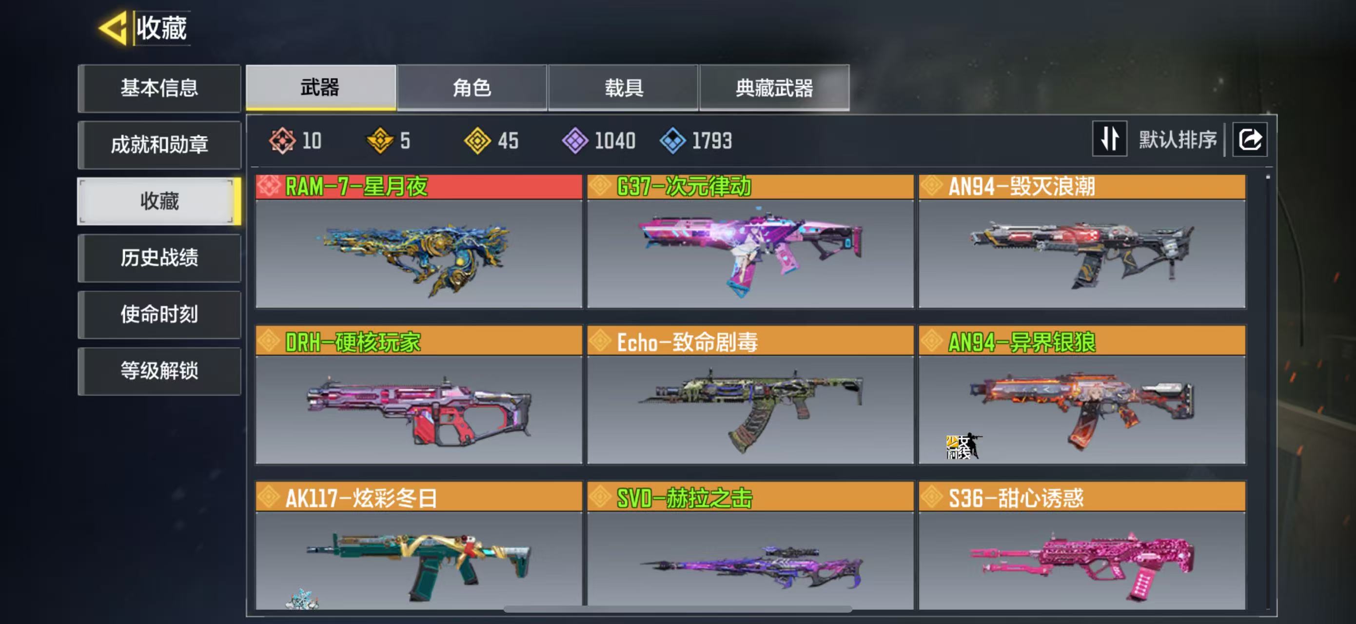 10红45橙5典藏硬核玩家致命剧毒次元律动毁灭浪潮凛冬庆典狂暴冲锋极速传奇虚空坍缩巨擎涡轮紫藤曼华虚空坍缩巨擎涡轮海神之戟晶流梦魇渊|影分光狂王笑终章飞翼浮游炮-v高达