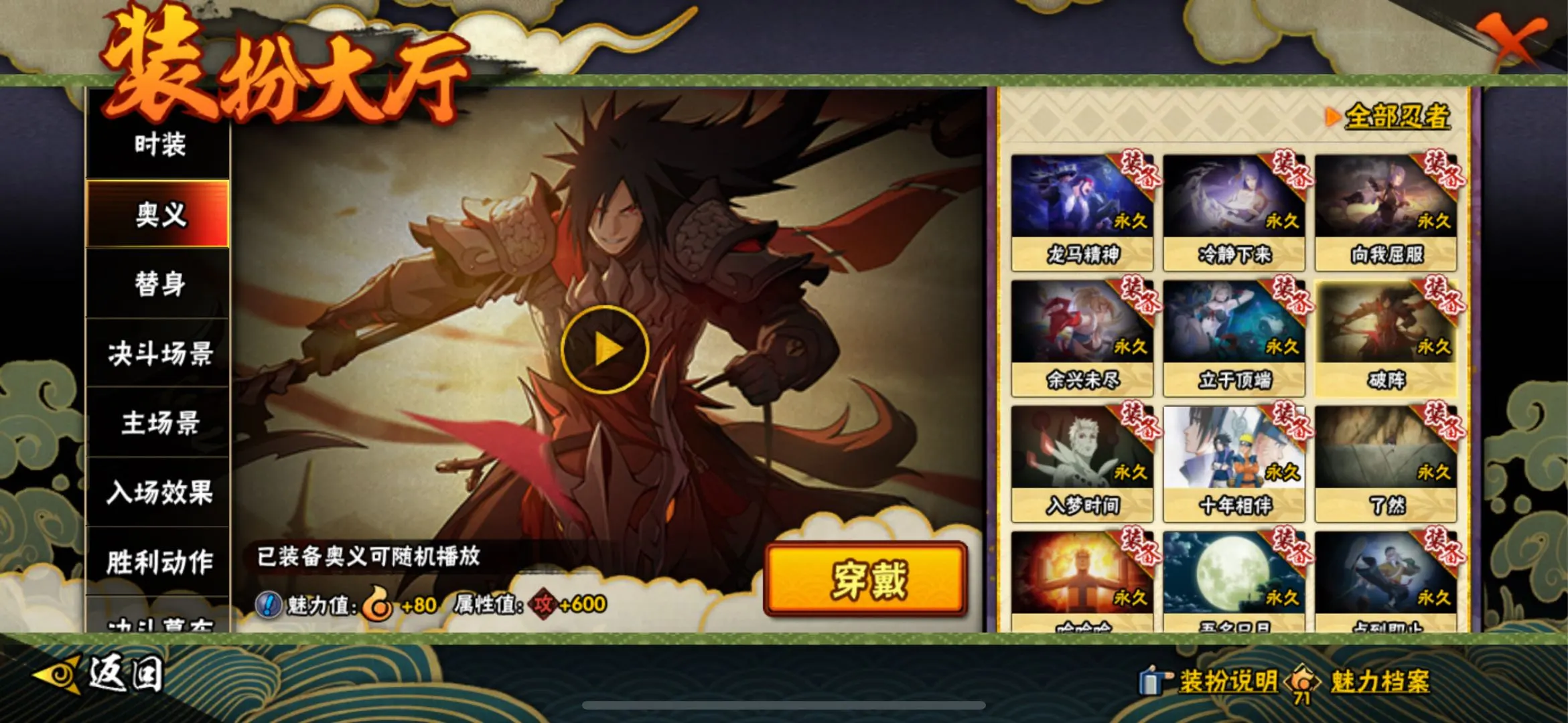 宇智波斑 「秽土转生·解」 千手柱间 「木叶创立」 宇智波佐助「永恒万花筒」 神秘面具男 「红夜之刃」春野樱 「忍界大战」大筒木金式 「博人传」漩涡鸣人「九喇嘛连结」三代目风影「秽土转生」大蛇丸「百战不灭」大野木「忍界大战」迈特凯「死门」宇智波斑「木叶创立」宇智波带土「忍界大战」千手柱间「秽土转生」罗砂「四代目风影」宇智波鼬「秽土转生」自来也「舞之豪杰」佩恩·天道「超」药师兜「仙人模式」宇智波斑「秽土转生」艾「三代目雷影」宇智波斑「白面具」半藏「秽土转生」千手扉间「秽土转生」纲手「百豪」无「二代目土影」波风水门「秽土转生」金角·银角「秽土转生」猿飞日斩「秽土转生」长门「秽土转生」宇智波斑 千手柱间 艾「四代目雷影」千手扉间 神秘面具男 鬼灯幻月「二代目水影」佩恩「天道」大蛇丸 波风水门 纲手 自来也 宇智波鼬「须佐能乎」大野木「三代目土影」自来也「仙人模式」猿飞日斩