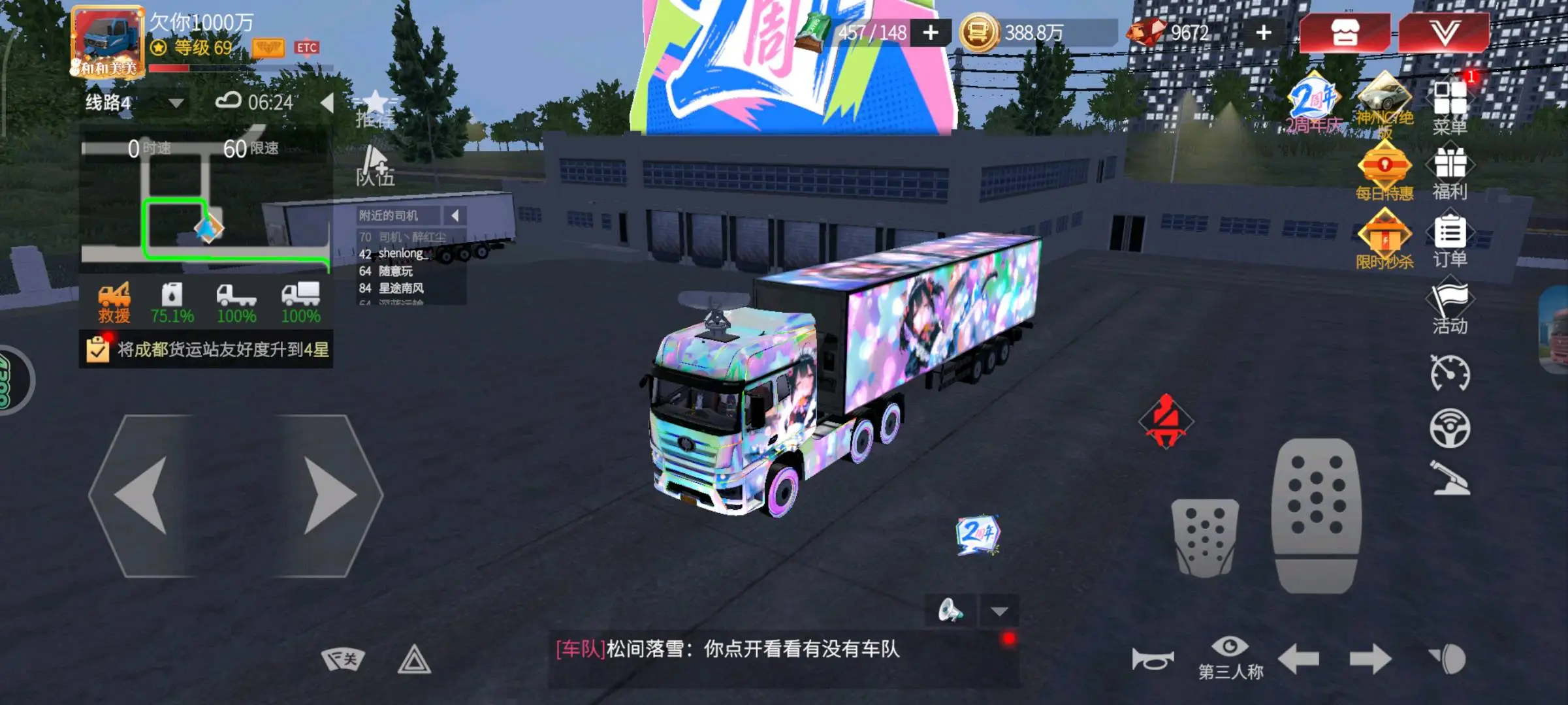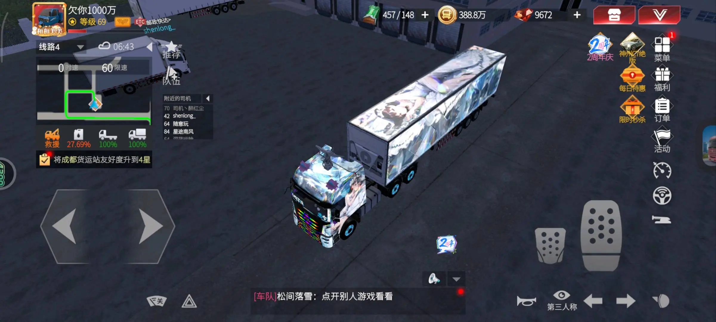 【安卓】 卡车人生《《指南村》》区。有玄豹动态皮肤,赤焰和440都有动态皮肤,永久特权卡,4399游戏盒登入