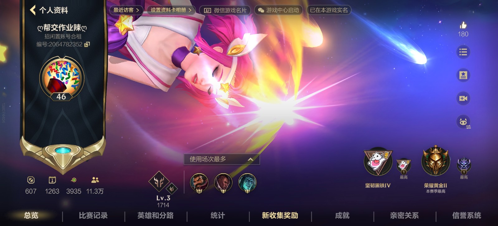 租号限制: 累计租号5次及以上 的用户才可租用此号 商品热度:67