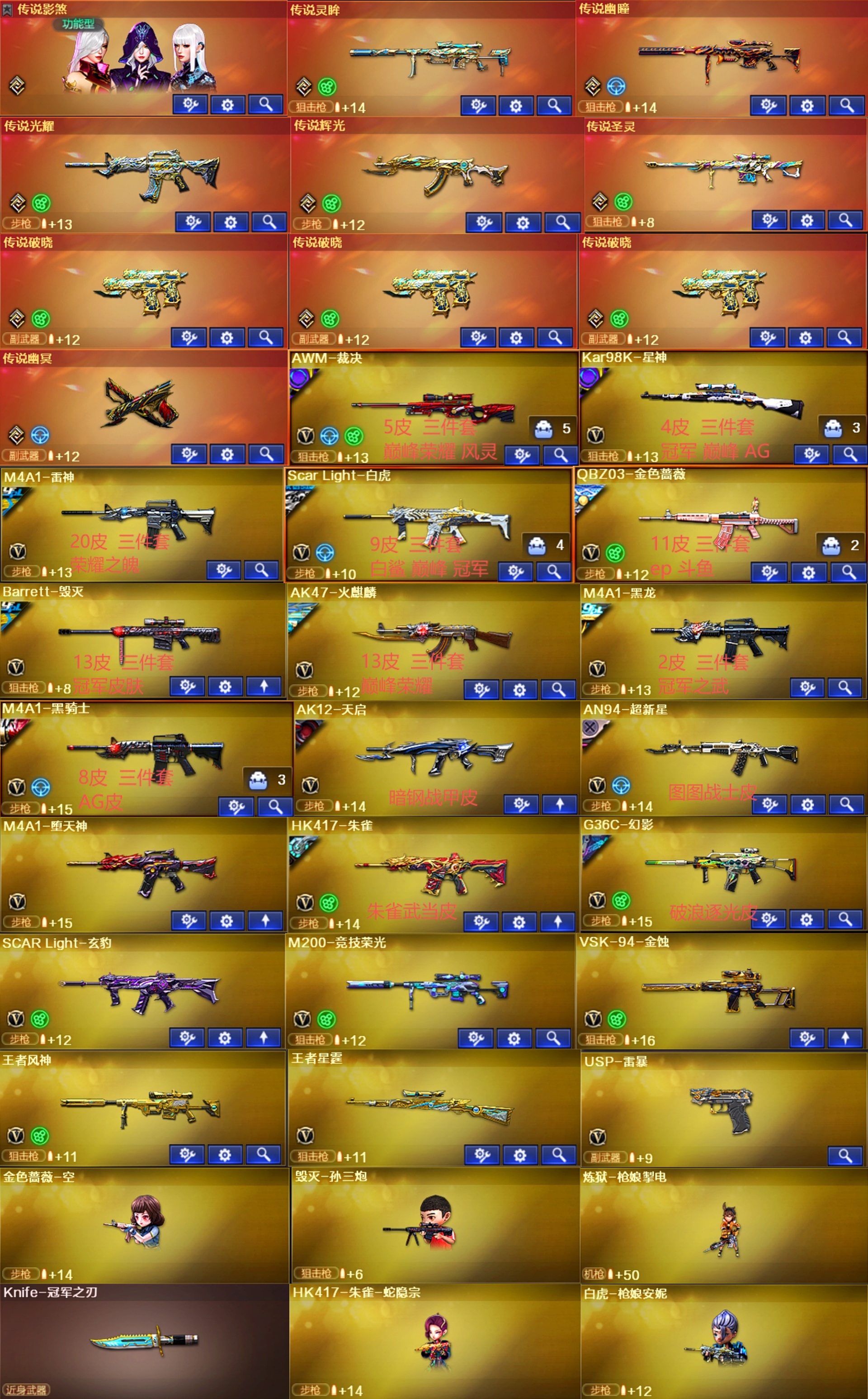 【允许排位】10传说幻神21皮 光海夜岚 ep全套 幻神星神白虎蔷薇裁决音效卡 G36C幻影25把副武器3冠军刀