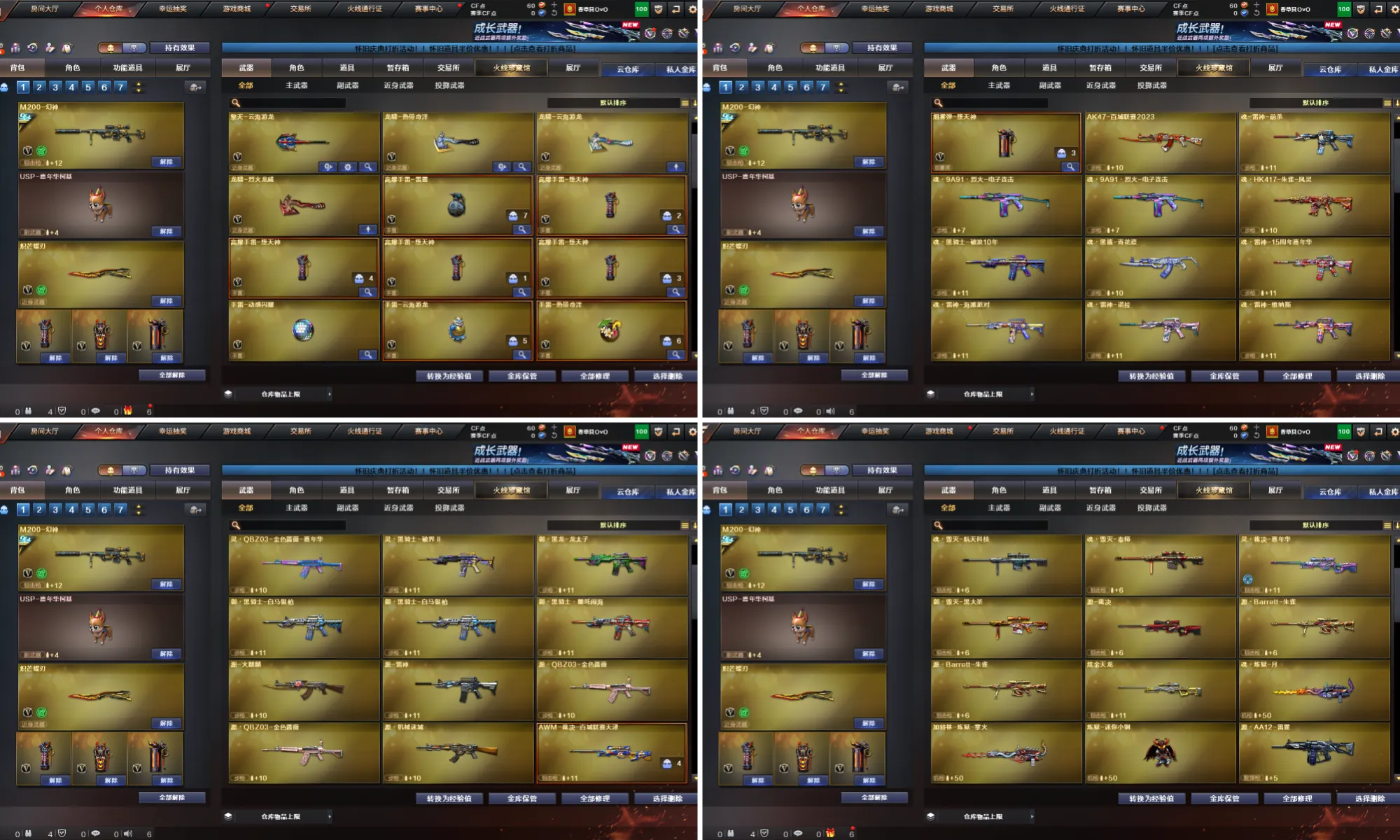 【英雄武器】_M200-幻神/Barrett-毁灭/Barrett-极光/王者之光-觉醒版/Kar98K-星神/AWM-天龙/M4A1-神工天巧/M4A1-雷神/M4A1-死神/M4A1-龙血/M4A1-黑骑士/M4A1-武圣/M4A1-猎神/M4A1-玫瑰精灵/王者之魄-觉醒版/王者龙血-觉醒版/白虎之魄-觉醒版/AK47-火麒麟/无影-神兵利器/AK47-黑鲨/QBZ03-金色蔷薇/王者之心-觉醒版/烈火-动感闪耀/AA-12-雷霆/加特林-炼狱/雷霆之契/天神-动感闪耀/沙鹰-天神/沙鹰-修罗(3)/Glock18-武圣/麒麟刺/麒麟刺-堕天神(2)/龙啸/龙啸-堕天神/擎天/屠龙-动感闪耀/屠龙/雷霆之锋/炽芒蝶刃/手雷-动感闪耀/高爆手雷-雷霆/高爆手雷-堕天神(4)/烟雾弹-雷霆/烟雾弹-堕天神(4)/闪光弹-雷霆/闪光弹-堕天神(4)/黑武士-锦绣游龙/超新星-热带奇洋/王者芳薇-觉醒版/烈龙-云海游龙/龙啸-热带奇洋/擎天-云海游龙/龙啸-烈火龙威/手雷-热带奇洋/手雷-云海游龙