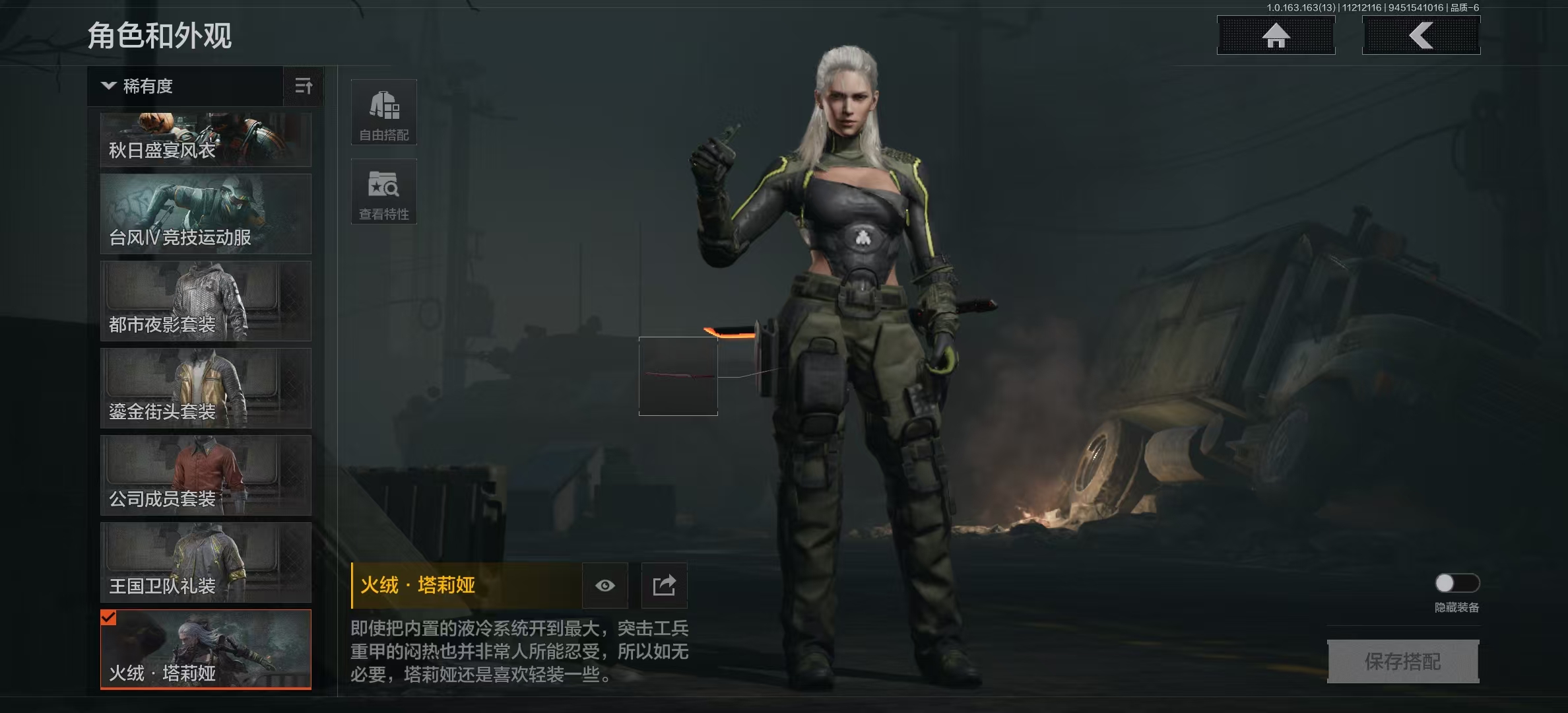 30级,刀皮5,橙枪皮2,金枪皮14,紫枪皮43,历史最高段位:王牌,【角色皮肤】:火绒塔莉娅,鎏金街头套装,都市夜影套装,台风IV竞技运动服,秋日盛宴风衣;【近战武器】:S-07折刀,赢家匕首,热能武器补牢,裁决手杖剑,急袭弯刀;【突击步枪】:竞技FAL,竞技H416,战术大师AK102,告丧夜曲AUG,黄金AK74N,秩序F2000,告丧夜曲AR57,旗帜AEK,旧王圣谕QBZ191,棱光裂变AKM,竞技M4A1,竞技MDR,棱光裂变AK102,火力倾泻AUG,竞技AUG,棱光裂变AK74N,来战AK74N,莫克斯AKS74U,骑士之剑AKS74U,赢家F2000,炎夏浪花AR57,棱光裂变ACE31,骑士之剑ACE31,最后防线AEK,伦琴计量AN94,火绒AN94,饰金Groza,异彩合金SCAR,武侍FAMAS,利齿风暴T03,火绒AK12;【冲锋枪】:应龙Vector9,竞技MP5,利齿风暴MPX,饰金MP5,高塔之内P90,利齿风暴T79,鱼跃丹青T85,超越自我Vector9,战术大师Suomi;【射手步枪】:SORMK14,旧王圣谕VSS,骑士之剑VSS,棱光裂变QBU191,饰金VSS,高塔之内VSS,特维拉防卫VSS,典礼武备MK14,骑士之剑MK14,焰色反应M110,鱼跃丹青QBU191;【栓动步枪】:棱光裂变莫辛,饰金AX50,超越自我AR30,武侍SJ16,骑士之剑SJ16,莫克斯M24;【手枪】:赢家G18C,秩序G18C;