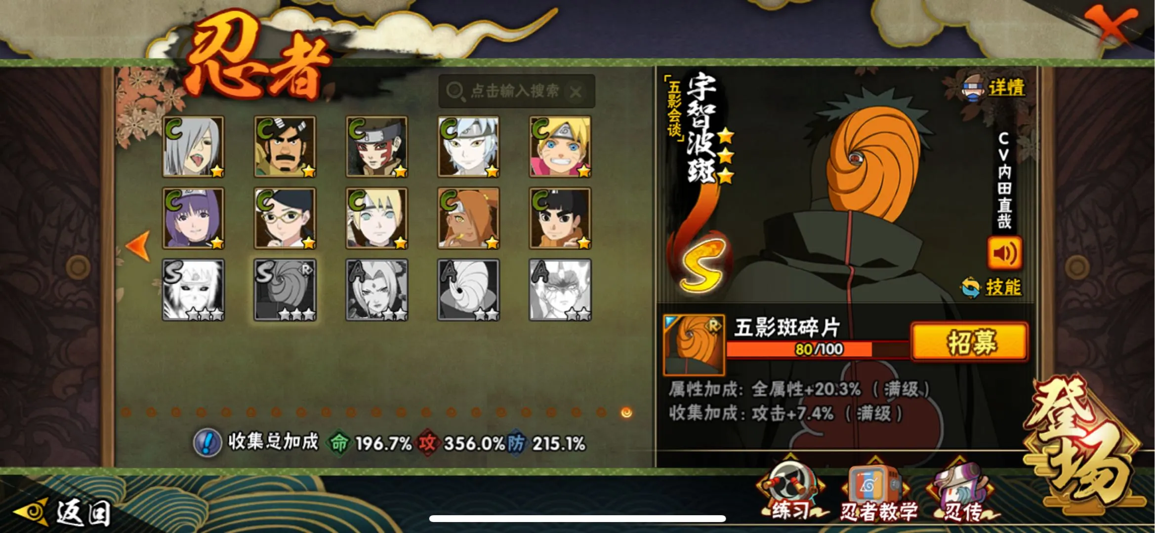 仙人自来也 纲手 波风水门 百战水门 猿飞日斩 千手柱间 宇智波斑 宇智波鼬 舞之自来也 大蛇丸 百战大蛇 秽土四代 秽土三代 秽土长门 仙人兜 黄猿九喇嘛鸣人 紫狗永恒佐助 樱婊忍战樱 秽土鼬 普通自来也 百豪纲手 死门凯 二代扉间 秽土二代 秽土初代 秽土柱间 白面具 须佐卡卡西 小胡子鬼灯幻月 雷影 土影 无 佩恩 百战佩恩 青年柱间 创立初代 秽土斑 青年斑 解斑 须佐止水 虎皮 破面带土 红夜带土 罗砂 秽土三代风影 忍战雷影 三代雷影 金角银角 秽土半藏 忍战大野木 小土豆 天道超 大筒木桃式 大筒木金式 钢铁之躯凯 桀骜之刃阿斯玛 狂野之鲨鬼鲛 飞段 黑飞段 百豪樱 忍战李 大卡卡西 五代水影照美冥 宇智波鼬 仙鸣 九尾查克拉鸣人 鹰佐 奇拉比 青年艾 半蛇兜 晓蛇 新春鼬 面麻 须佐佐助 疾风咒印佐助 忍战宁次 忍战天天 最终章雏田 幻容卡卡西 神卡 忍战卡卡西 泳装卡卡西 忍战凯 青春哥 惊门凯 爱情哥 新春止水 新春水门 青年水门 青水 新春我爱罗 泳装照美冥 侠隐照美冥 侠隐纲手 侠隐兜 漂泊再不斩 漂泊佩恩 漂泊二代 漂泊小南 漂泊佩恩 三船 青年三船 青年长门 泳装南 新春南 黑绝 新春大蛇丸 晓创生角度 晓创生蝎 晓创生飞段 泳装鼬 鲛肌融合鬼鲛 新春迪达拉 秽土迪达拉 恶灵之影飞段 暴怒带土 忍战黄土 卑留呼 桃博 黑土