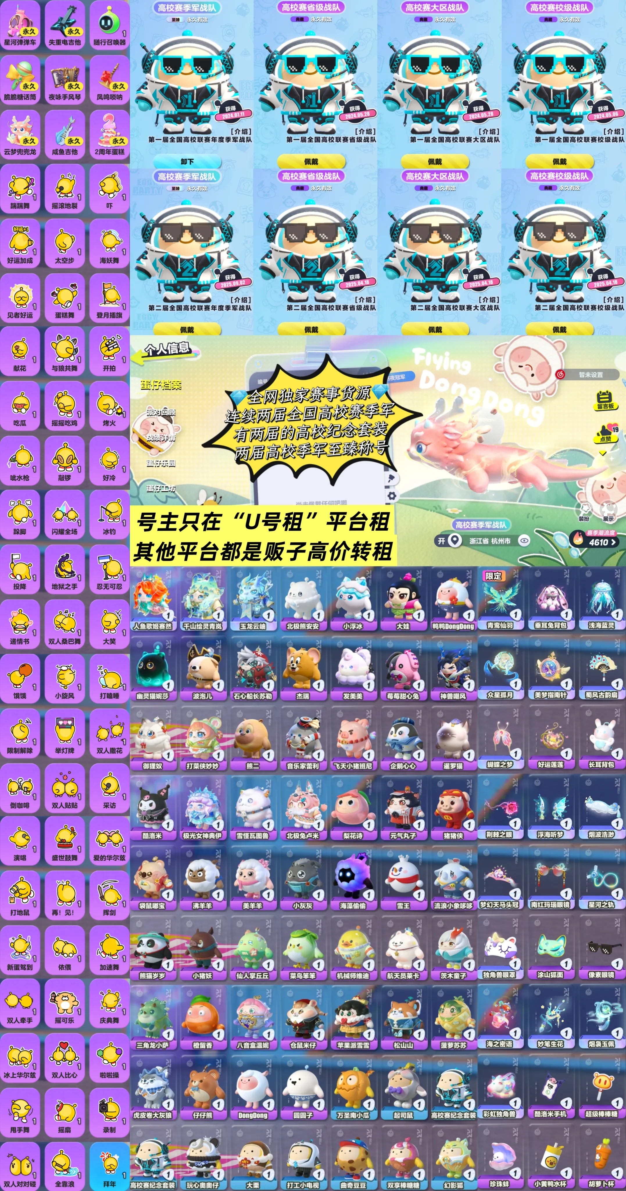 【全平台】 官服账密🍁两届全国高校联赛季军🍁稀缺高校纪念套装🍁小羊/棒棒糖/大栗/趣多多🍁十几个赛事称号