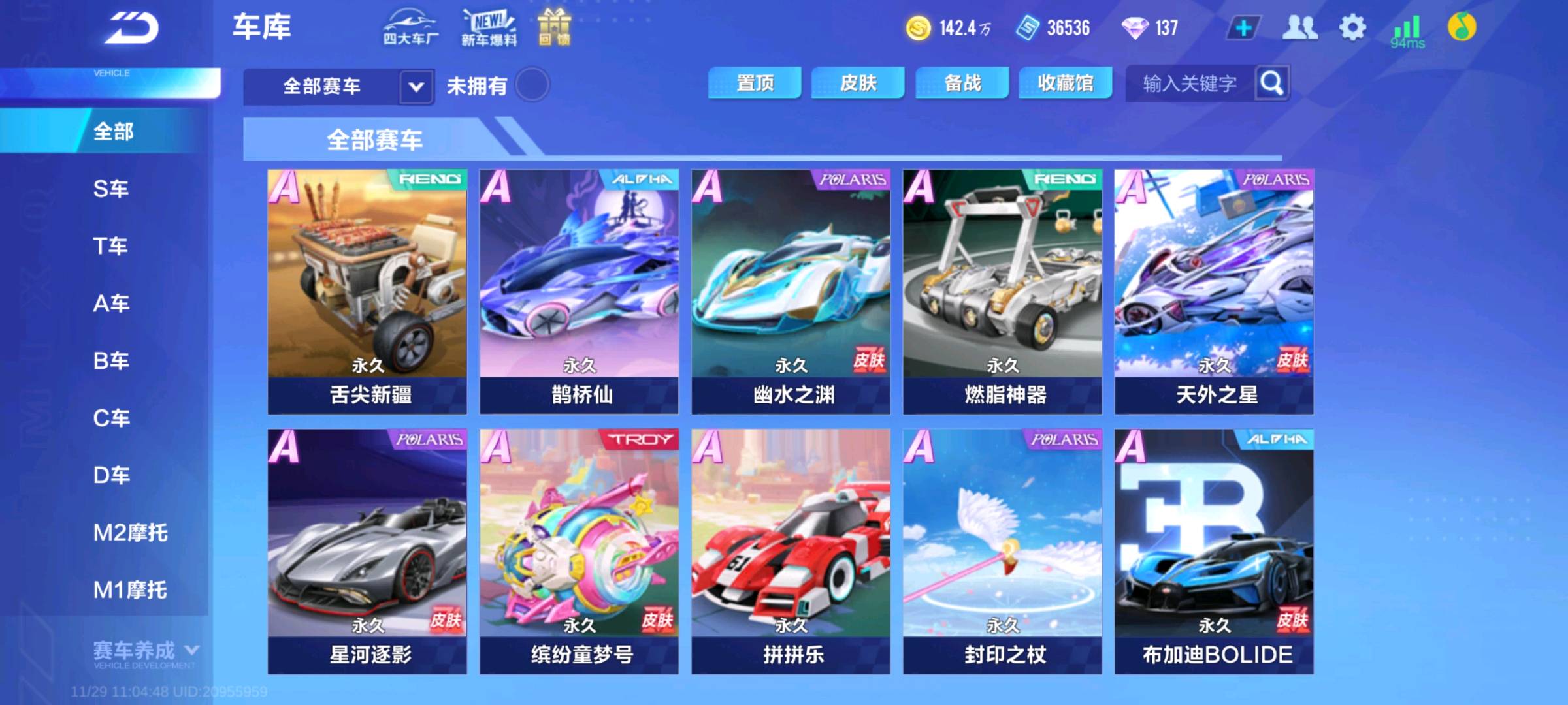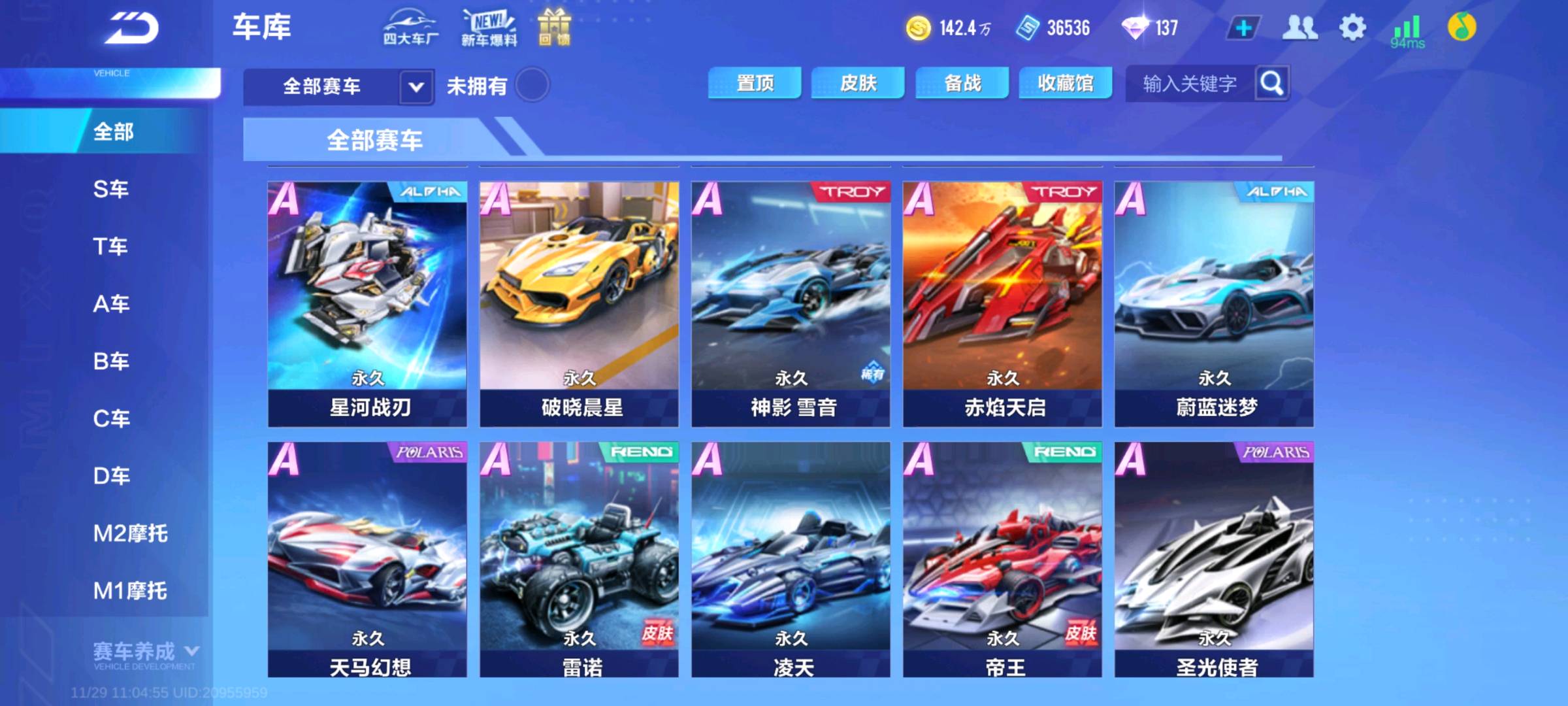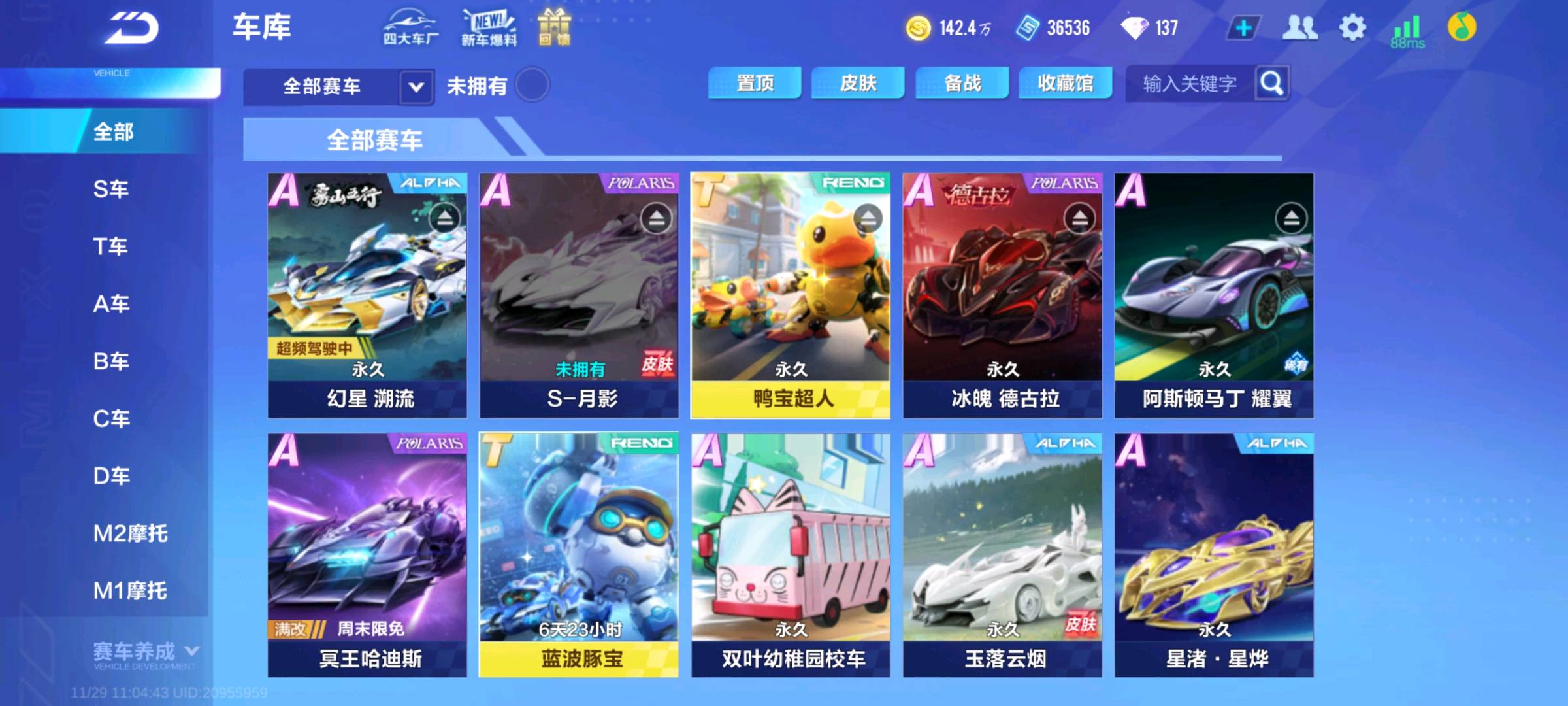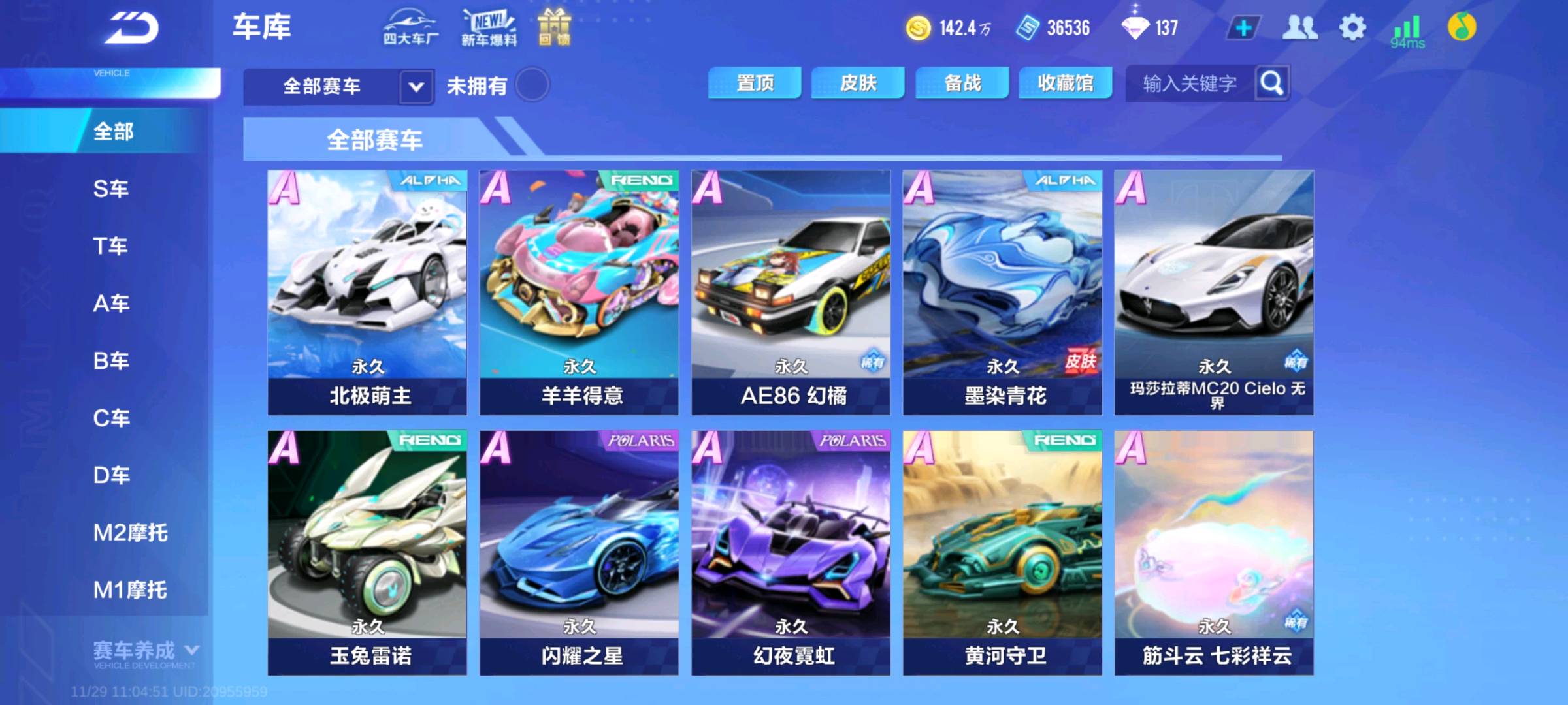 - 车辆皮肤: 幻星:溯流 天途 RSG,冰魄:灼焰 大花袄 德古拉 紫金勇士,阿斯顿马丁:耀翼,AE86:幻橘,玛莎拉蒂MC20:Cielo无界