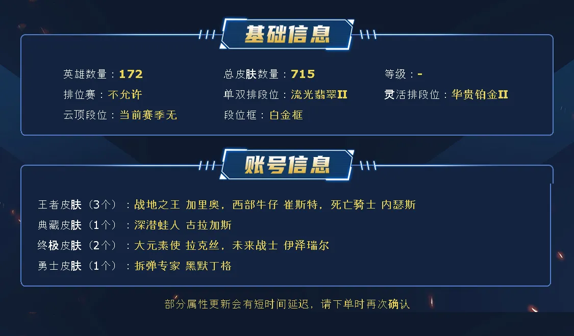 2708皮肤〓可排位妹子号白银〓全英雄〓54神话〓34臻彩〓殿堂传奇乐芙兰〓新蛇年套EDG至臻皇子永