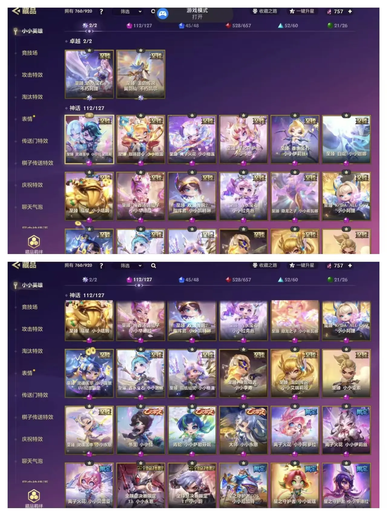 【苹果】 【魂】双卓越不朽阿狸凯尔✨112神话至臻✅760小小英雄✅满神话棋盘✅满攻击特效✅可匹可排✅红包局拉