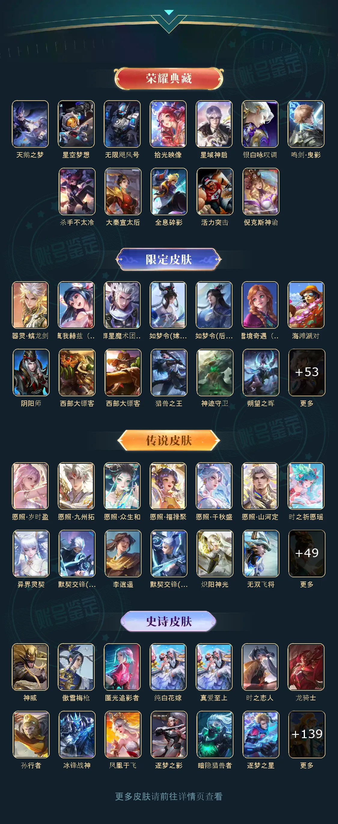 【苹果】 V10🔥487皮12典藏🔥满蛇年限定✨瑶无双+典藏+星传说✨曜无双韩信无双✨历史⑤金标