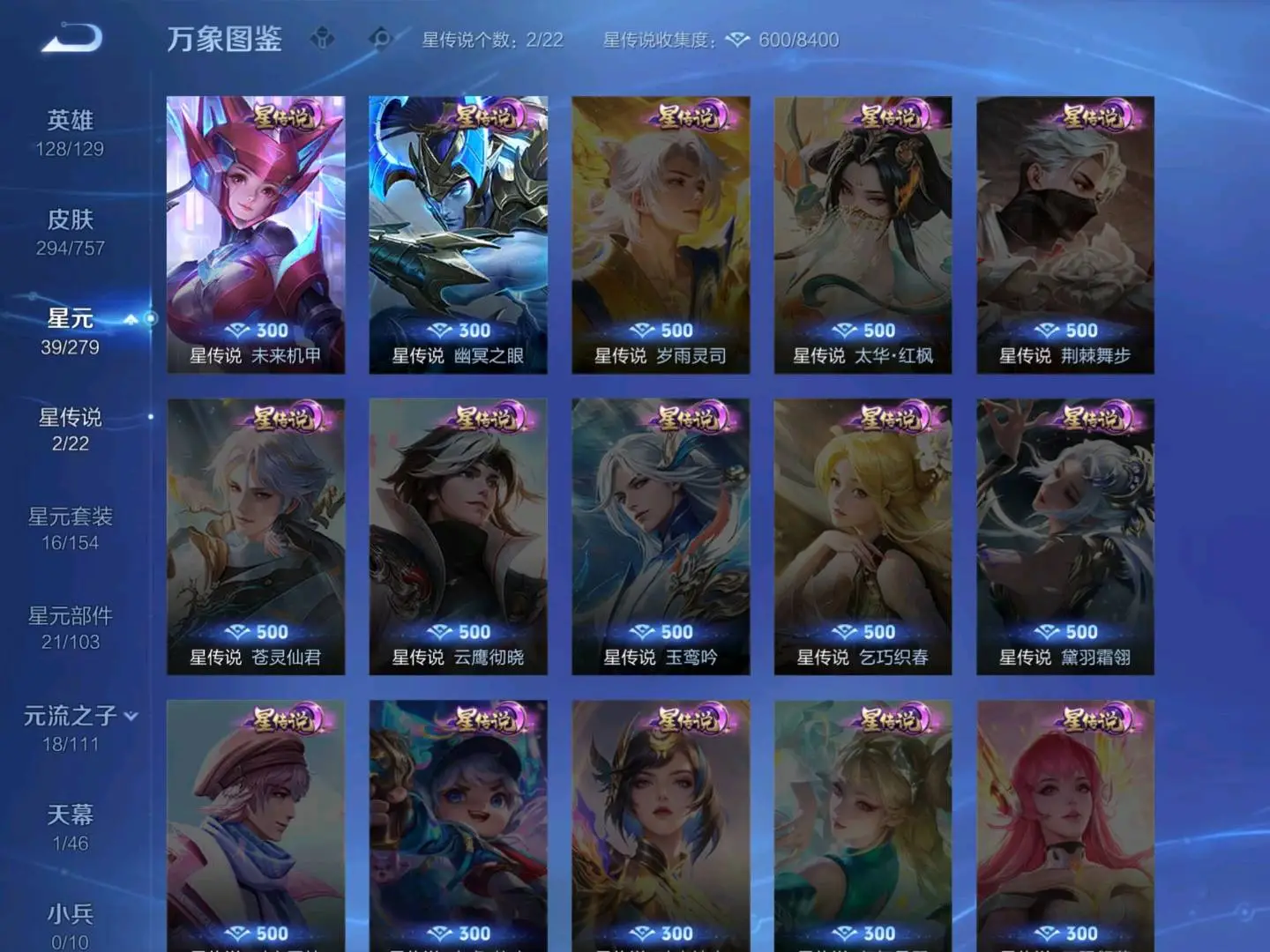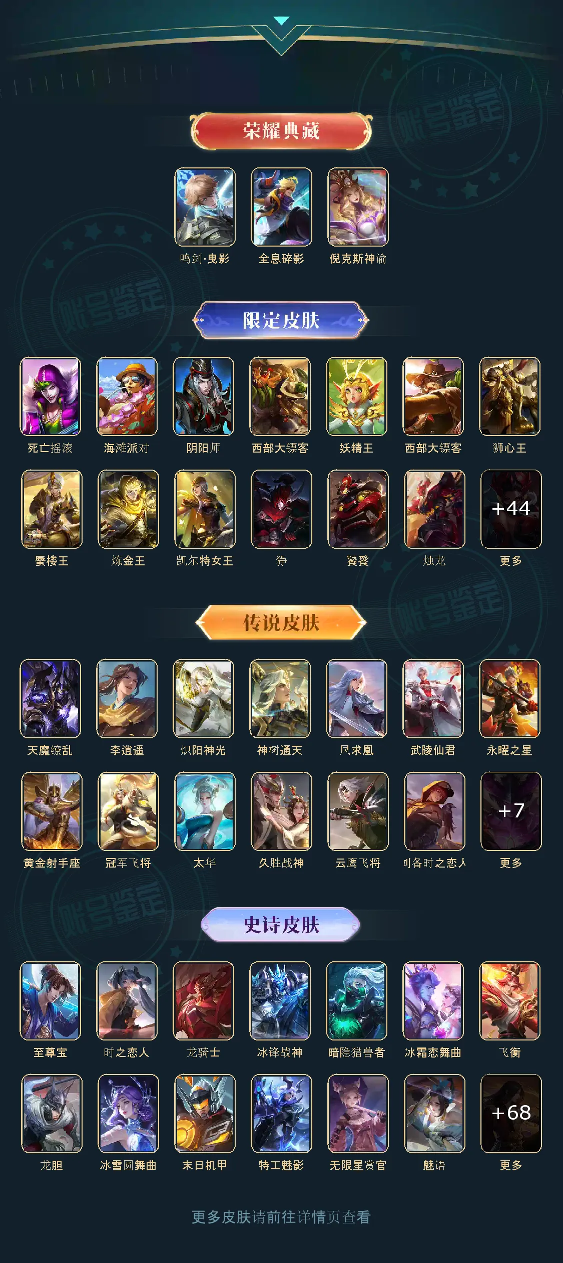 冰锋战神/街头霸王/天魔缭乱/至尊宝/王者之锤/凤求凰/武陵仙君/全息碎影/冰霜恋舞曲/太华/久胜战神/飞衡/梁祝/倪克斯神谕/鸣剑·曳影/龙胆/李逍遥