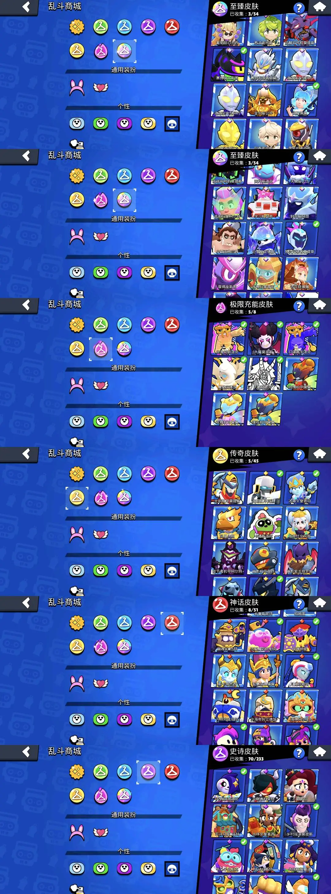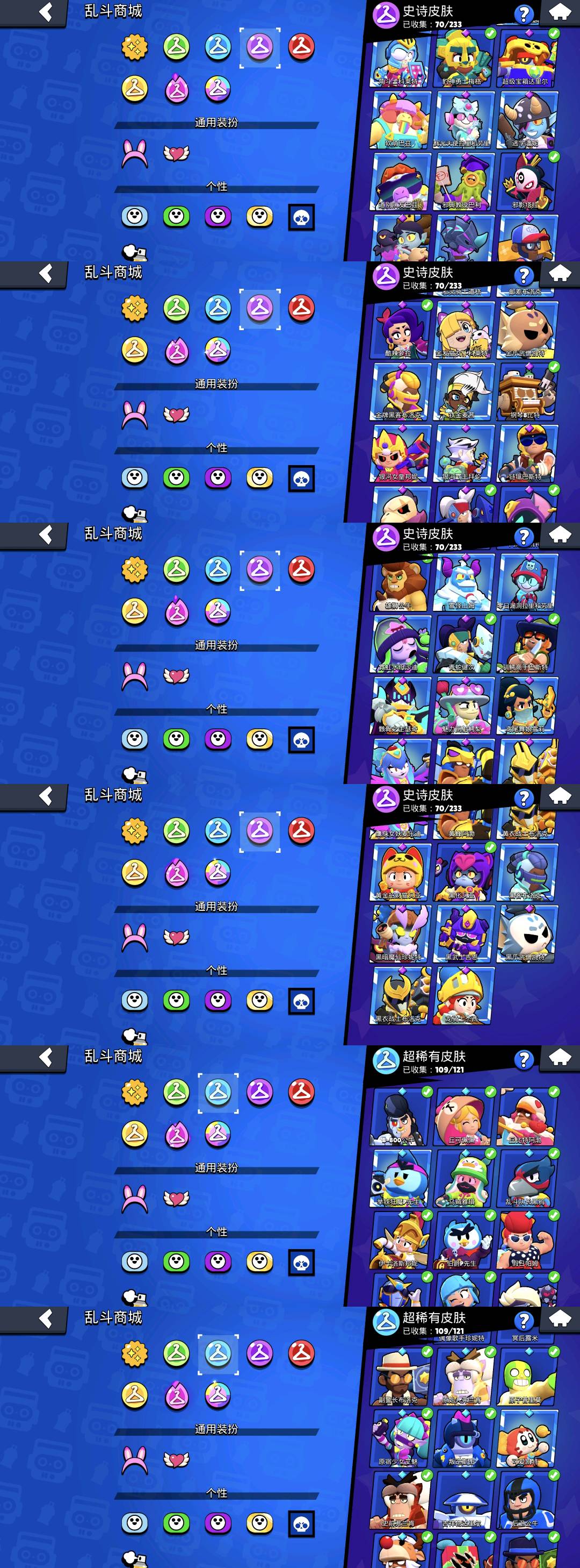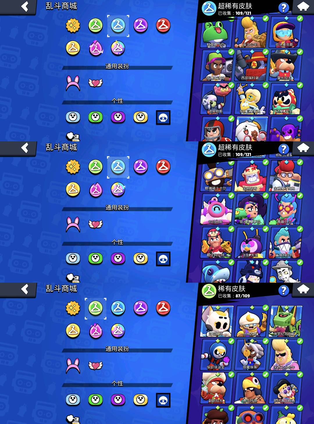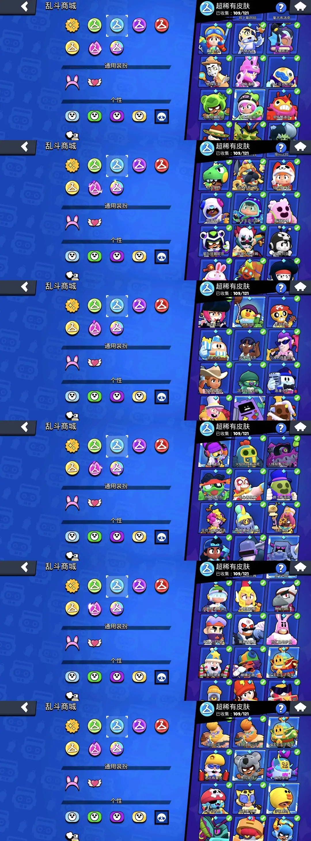柯尔特-镖客柯尔特 雪莉-明星雪莉 阿渤-光明机甲阿渤 阿渤-勇士阿渤 布洛克-街舞布洛克 布洛克-假面布洛克 布洛克-复古布洛克 格尔-商人格尔 杰西-红龙杰西 艾魅-校花艾魅 公牛-后卫公牛 公牛-蛮王公牛 卡尔-蛙里奥卡尔 莫提斯-高礼帽莫提斯 雅琪-建筑工雅琪 塔拉-蓝鸢塔拉 瑟奇-机甲圣骑瑟奇 佩佩-粉红佩佩等等