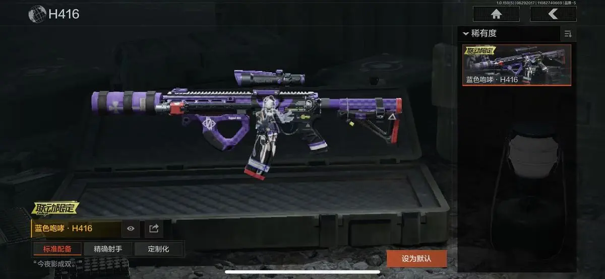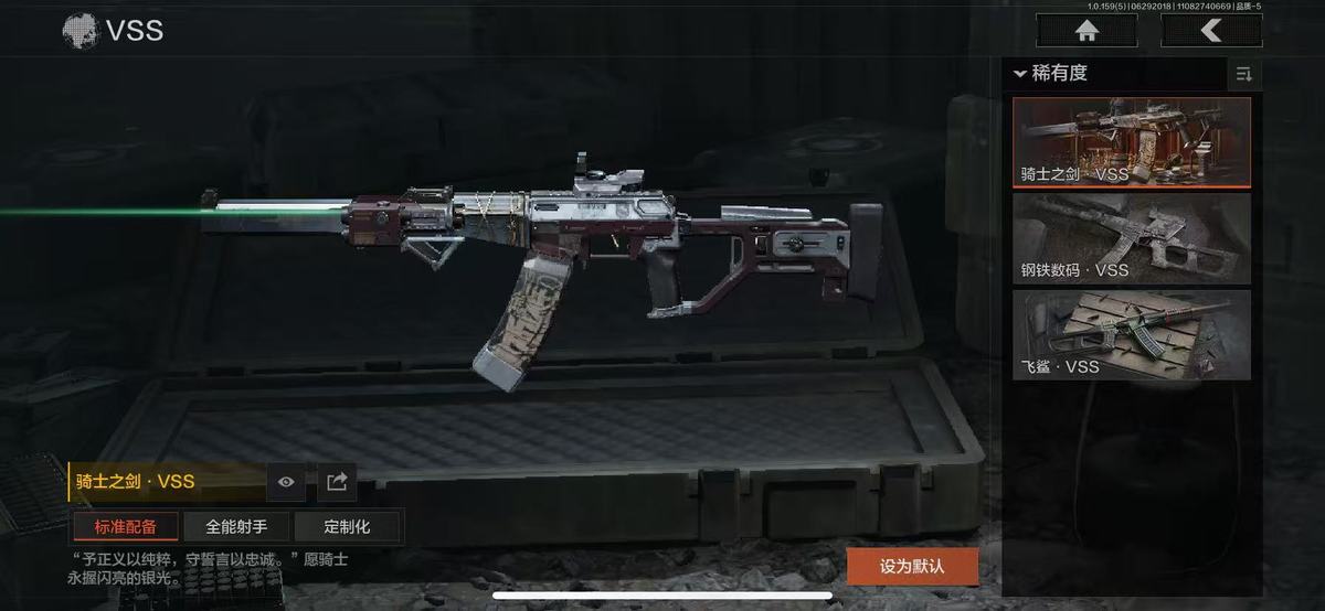 邓阿德2985:明刀绣春,急袭弯刀,霜狼生存刀,精英指虎,瑞兔折刀,野战折刀,工兵铲,来战开山刀;枪皮:蓝色咆哮H416,来战AKM,德尔塔小队M4A1,竞技M4A1,骑士之剑AKS74U,骑士之剑VSS,骑士之剑MK14,钢铁数码VSS,飞鲨VSS,黑金国际M110;