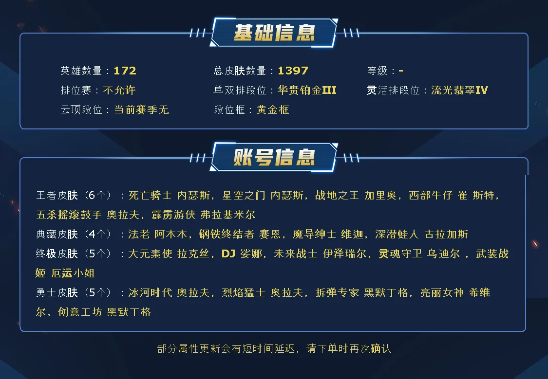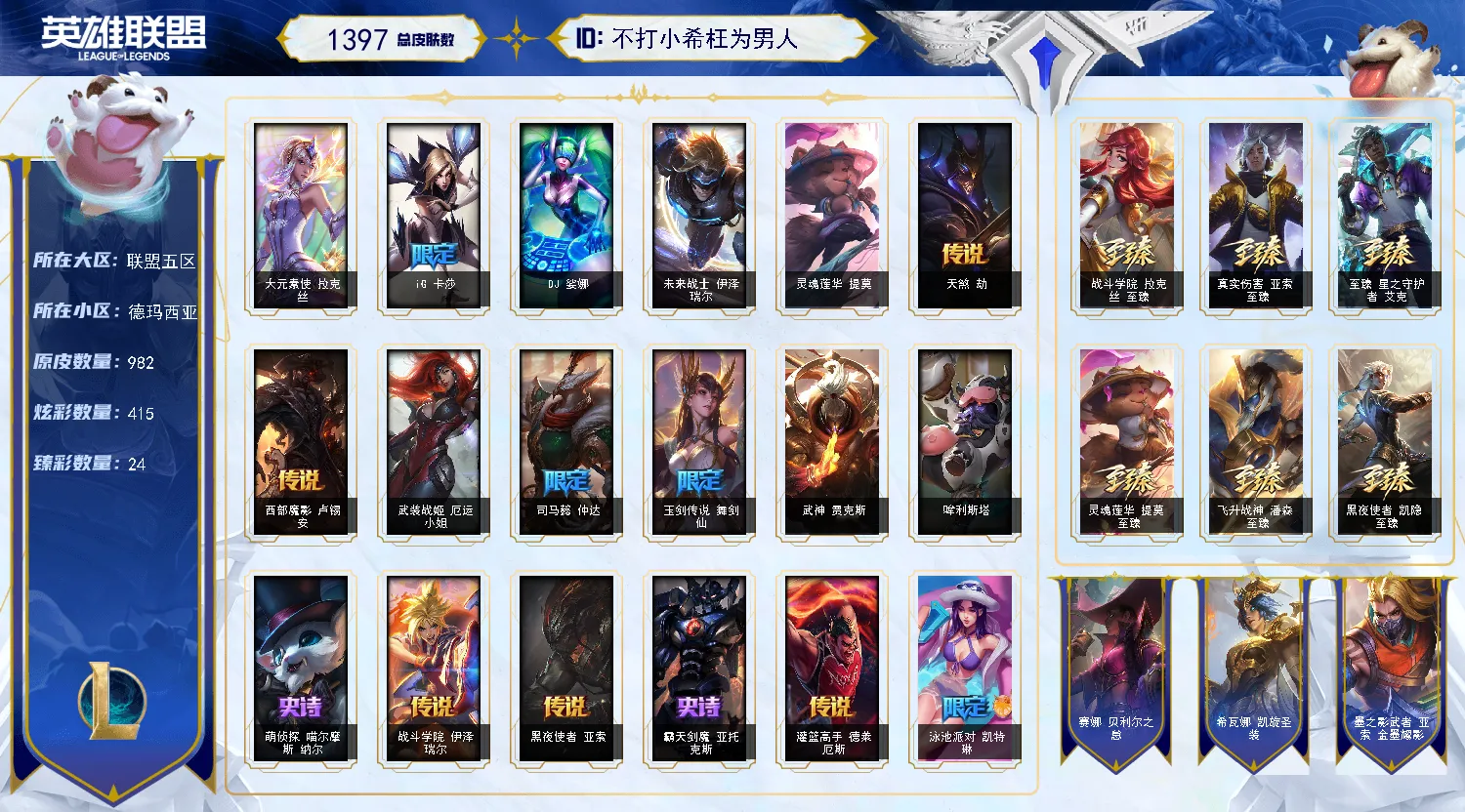 联盟五区/900+原皮/卧虎藏龙贾克斯/北极星神戴安娜/SKT冠军皮肤