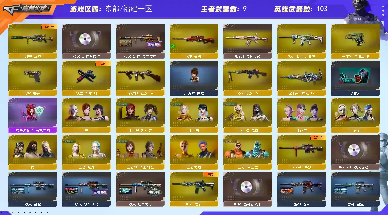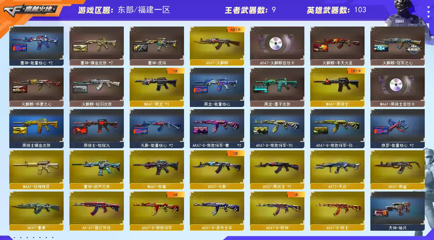 103V♥幻神黄忠三件套♥白虎裁决qbz♥AK雷暴♥5盘龙7炼狱六烈龙+斯泰尔蝴蝶♥生化满配