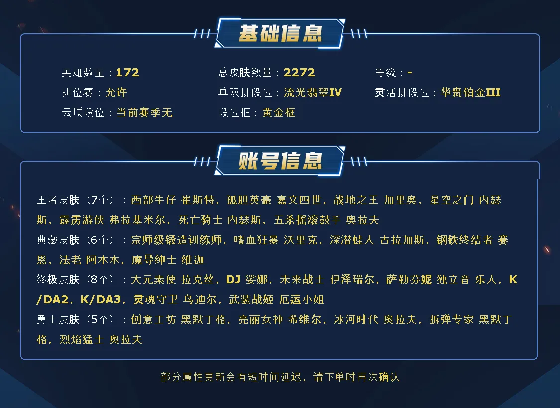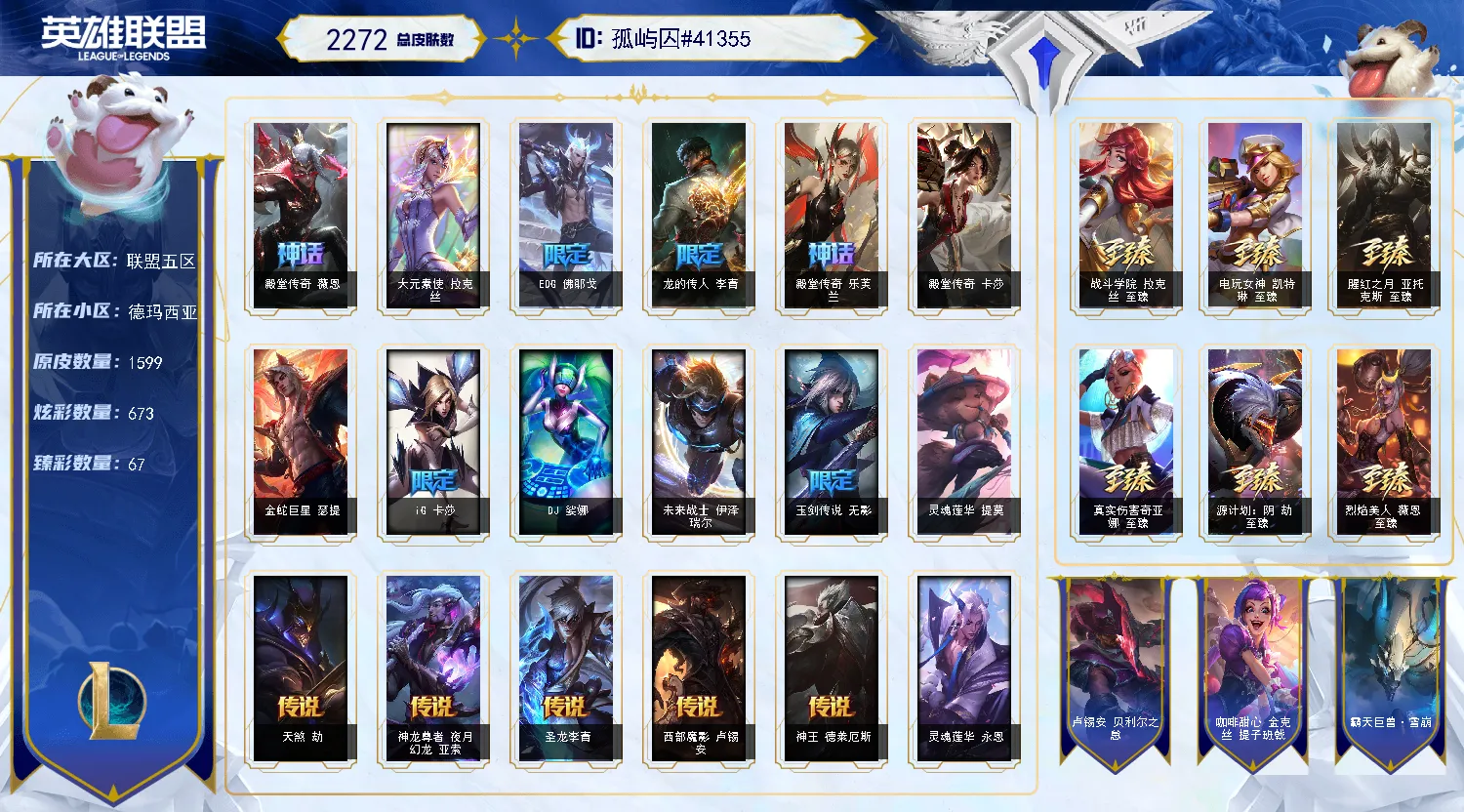 德玛西亚1600原皮❤可下棋可排位❤名人堂卡莎/1圣堂/6终极️/87神话/