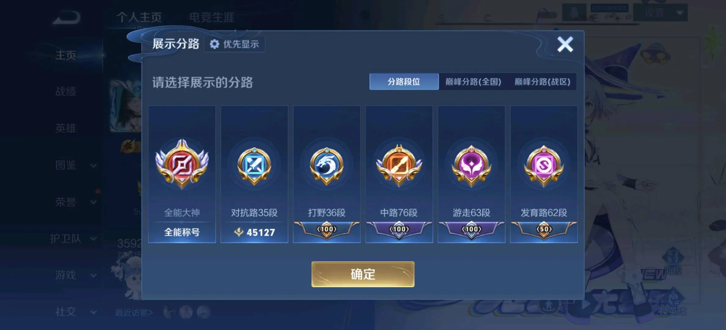 【安卓】 全能大神✨在榜中路76段✨游走63段✨射手62段✨对抗35段✨打野36段✨历史1国17金标✨504皮