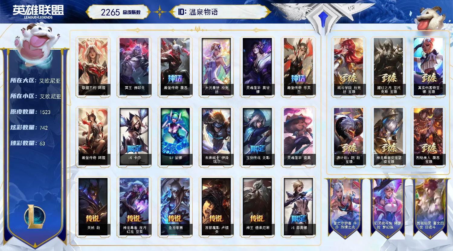 艾欧尼亚1518原皮丨圣堂佛耶戈莫甘娜丨不朽阿狸丨281限定丨91神话丨7终极丨714炫彩皮