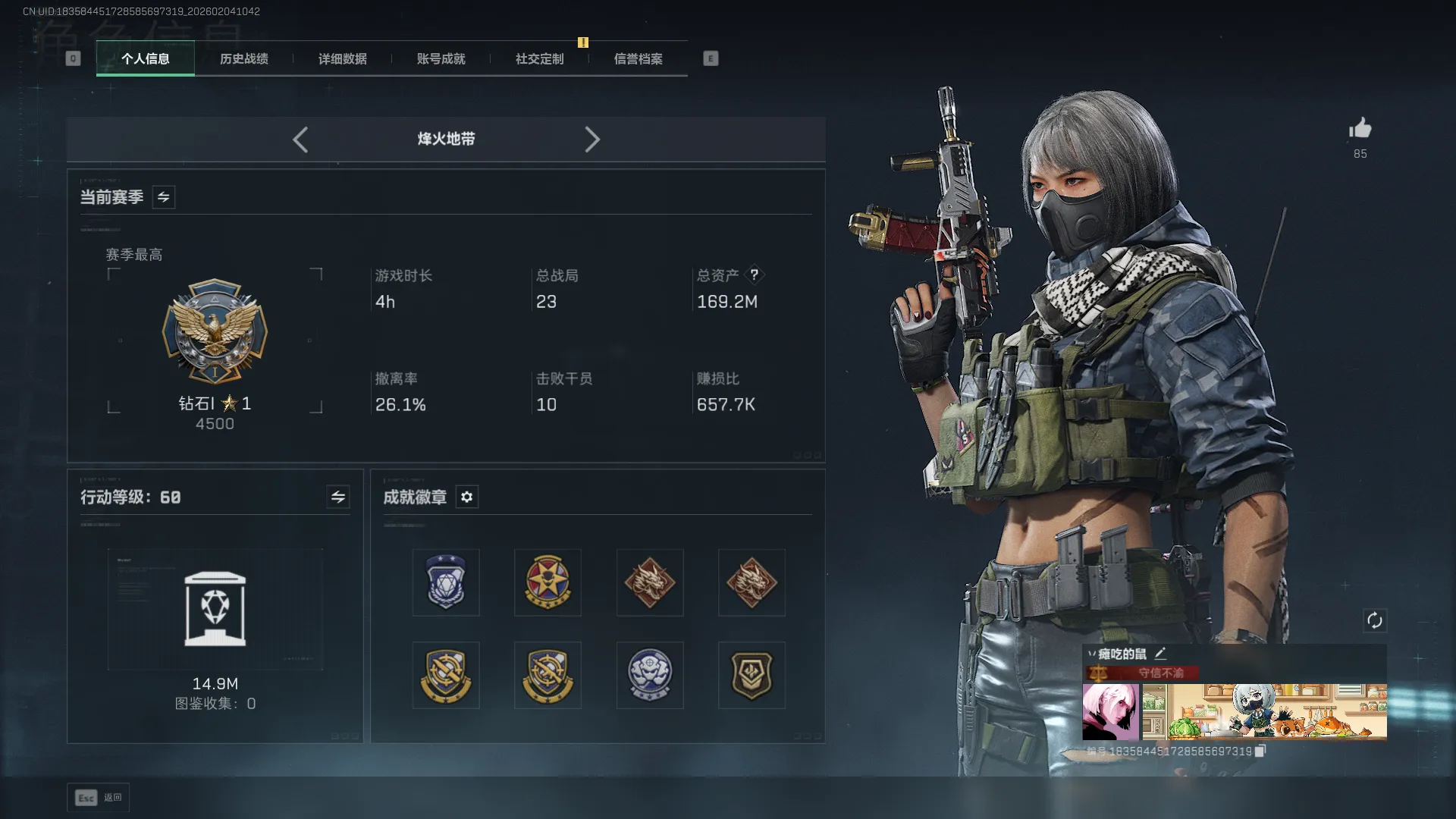 - 烽火地带段位: 钻石