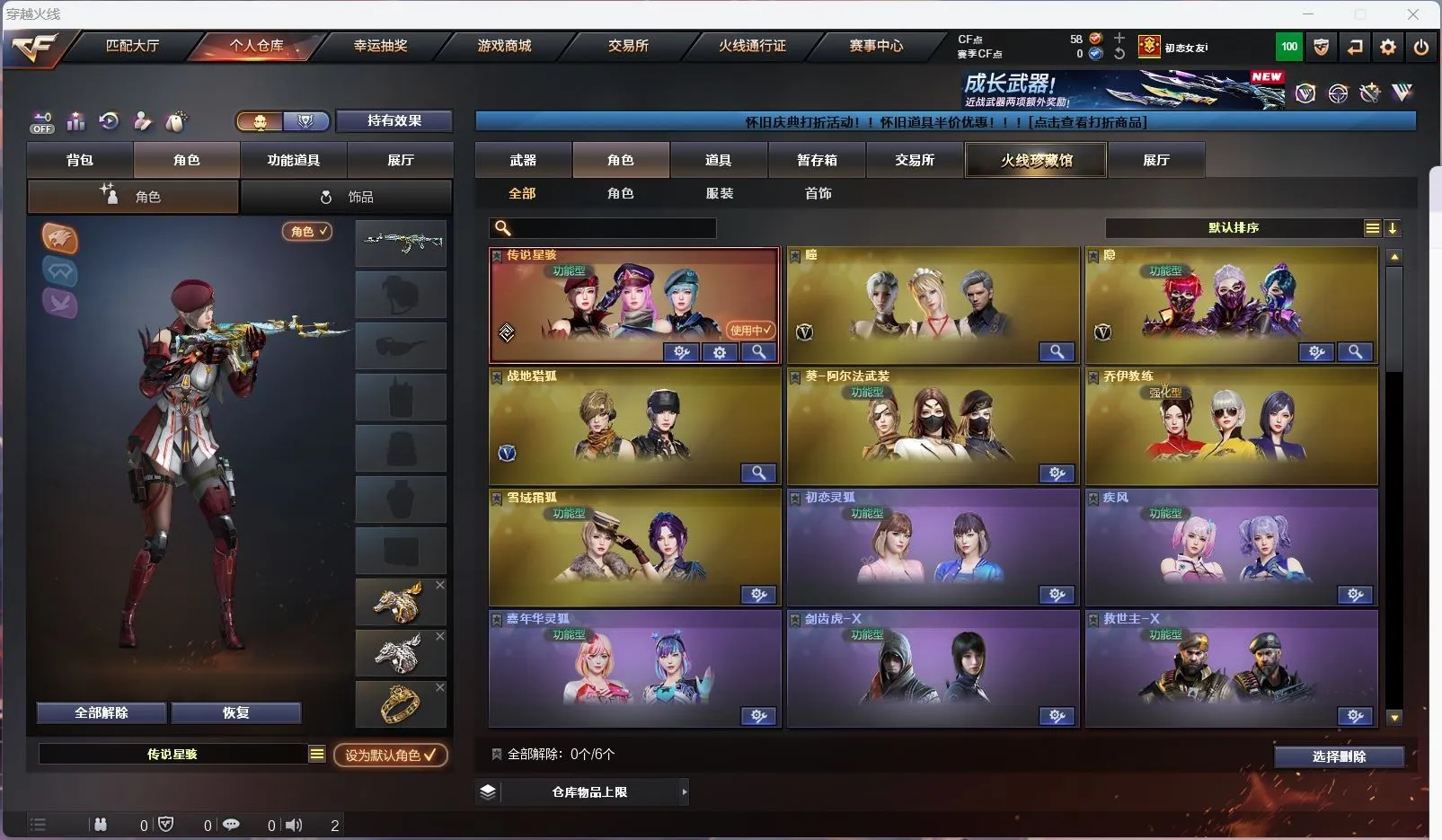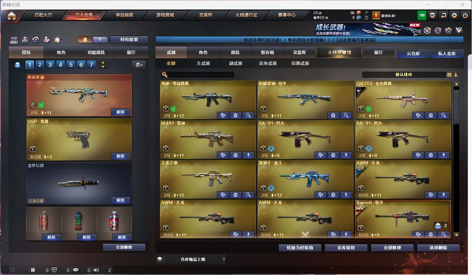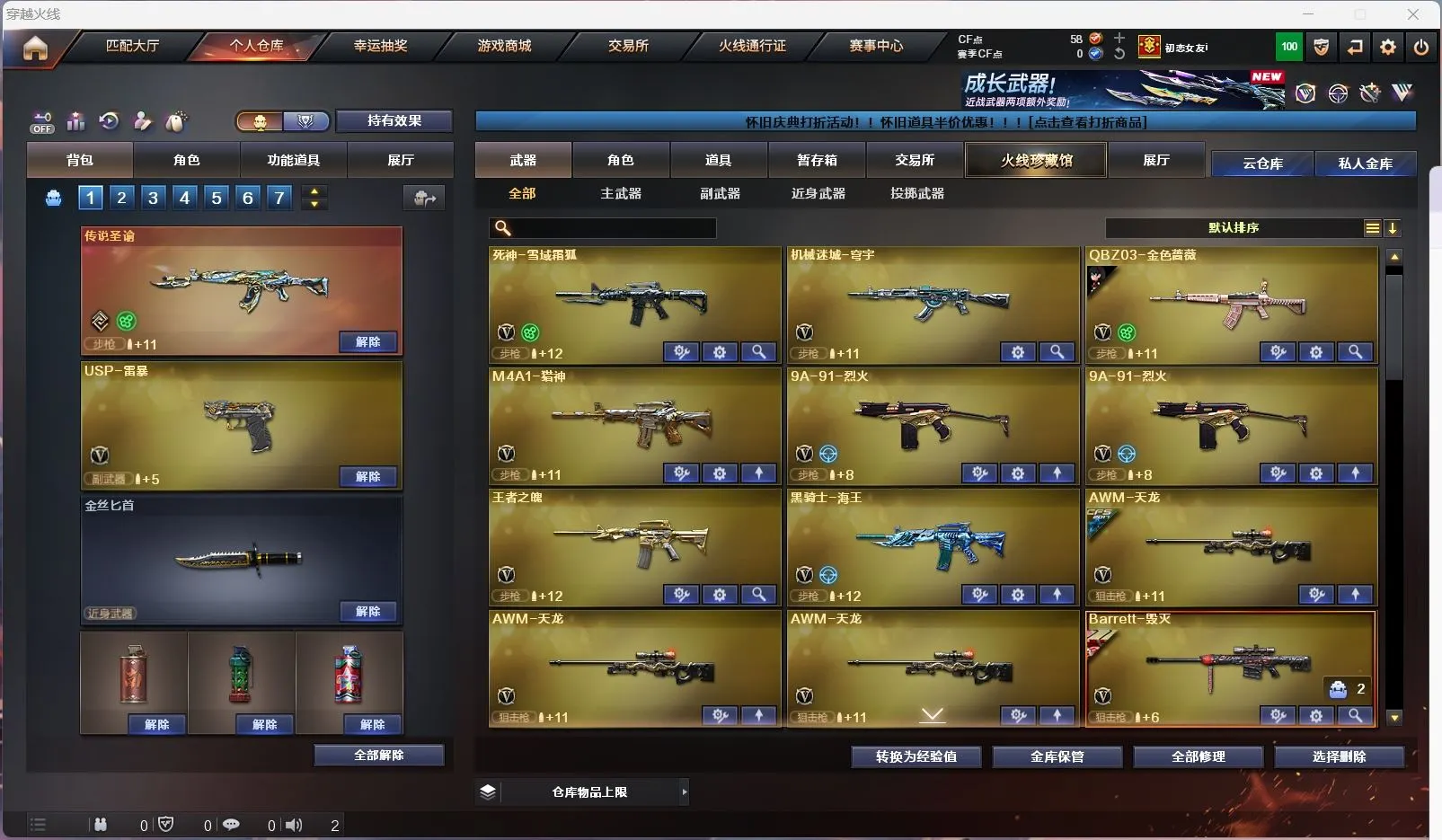 【亮点解析 传说角色 幻神三件套 白虎三件套 裁决三件套 】【传说星骇 】【m200幻神+音效卡+ag24冠军+usp雷暴】【98k星神+璀璨】【传说圣谕】【scar白虎+卡+白鲨冠军】【qbz金色蔷薇+ag19冠军】【朱雀】【天戎】【qbz天罚 】【火麒麟+巅峰荣耀】【黑骑士 +卡】【毁灭+卡+sv16冠军】【极光】【裁决+卡+巅峰荣耀 】【武器:天启 王者之魄 海王 天龙 王者之魄 海王 烈龙】【7手枪:修罗*3 天神*2 雷暴 堕天神 】【7刀具:屠龙 擎天 麒麟刺 龙啸*2 】【音效卡:黑骑士音效卡 毁灭音效卡 裁决音效卡 白虎音效卡 幻神音效卡 】