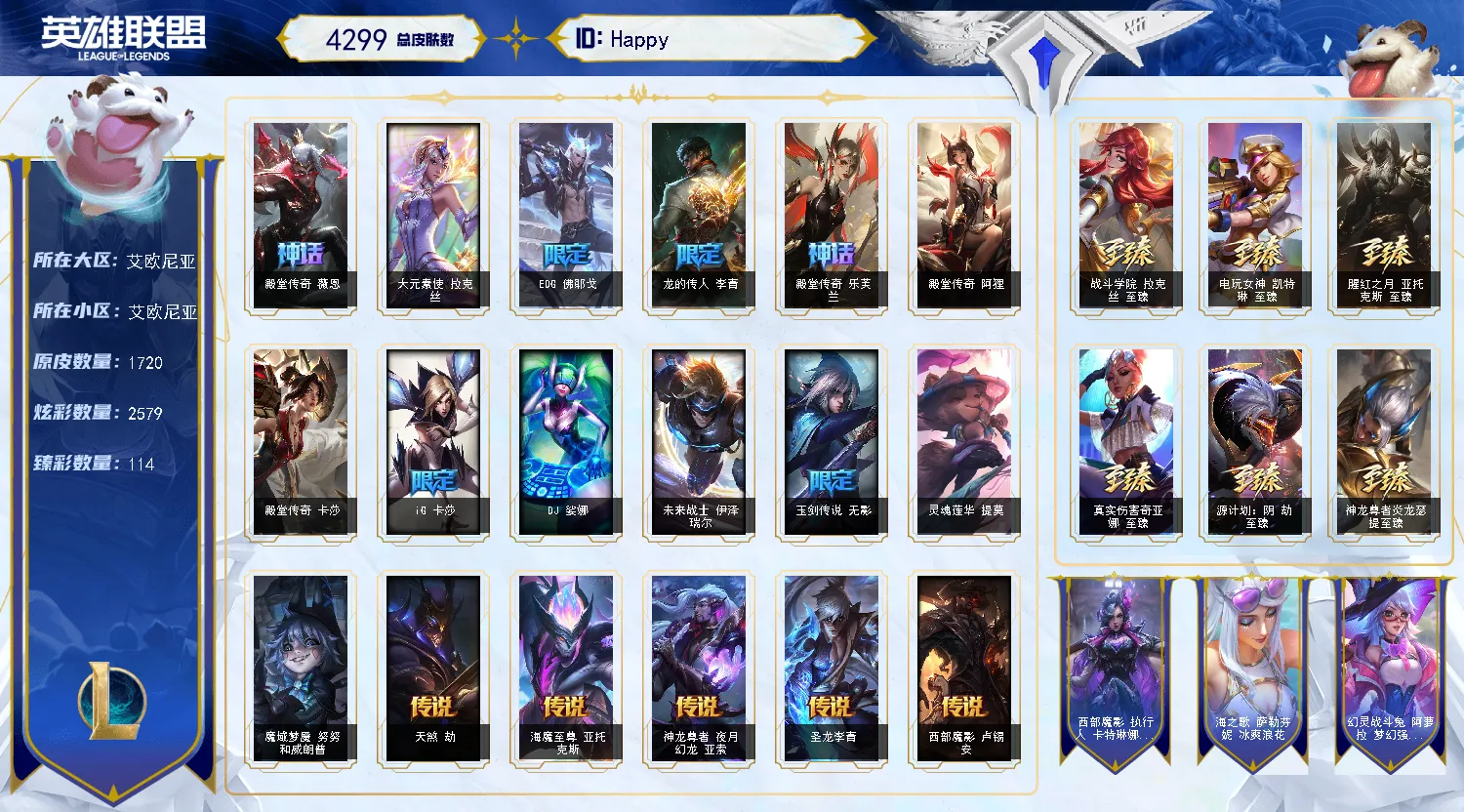 4000p清空商城-全精品皮肤-1718原皮超级号-晴天-136神话-云顶15神话!!!