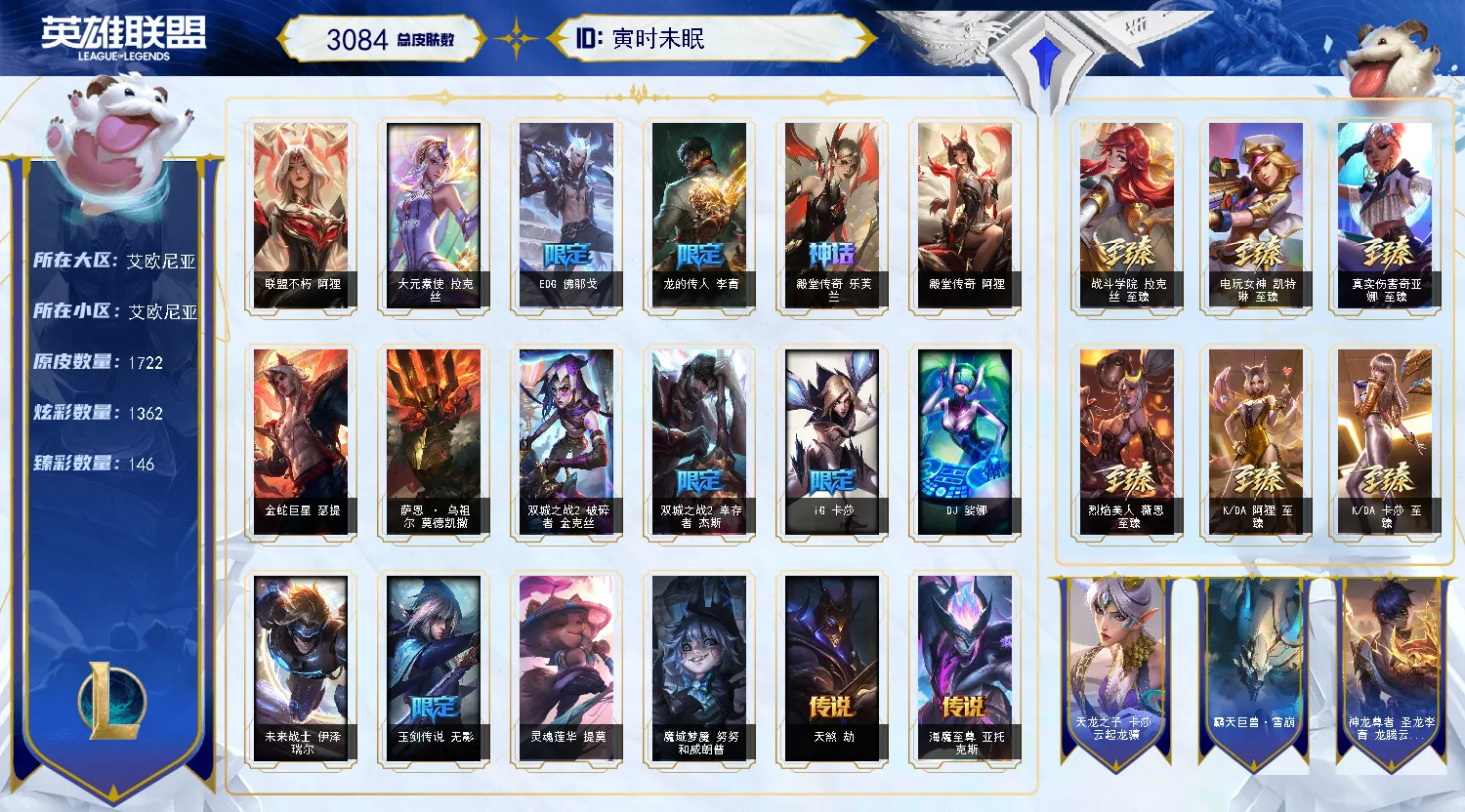 电一单双4赛季、云顶7赛季千分王者-三档阿狸-3圣堂-1722原皮-云顶70神话!!!