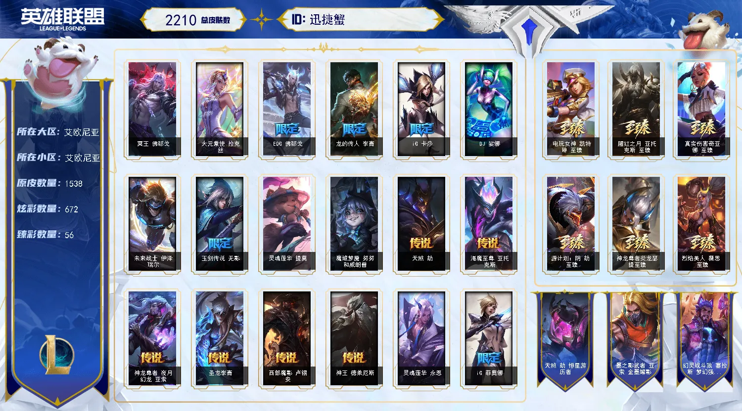 艾欧尼亚1538原皮丨圣堂佛耶戈丨314限定丨56神话丨56臻彩丨664炫彩