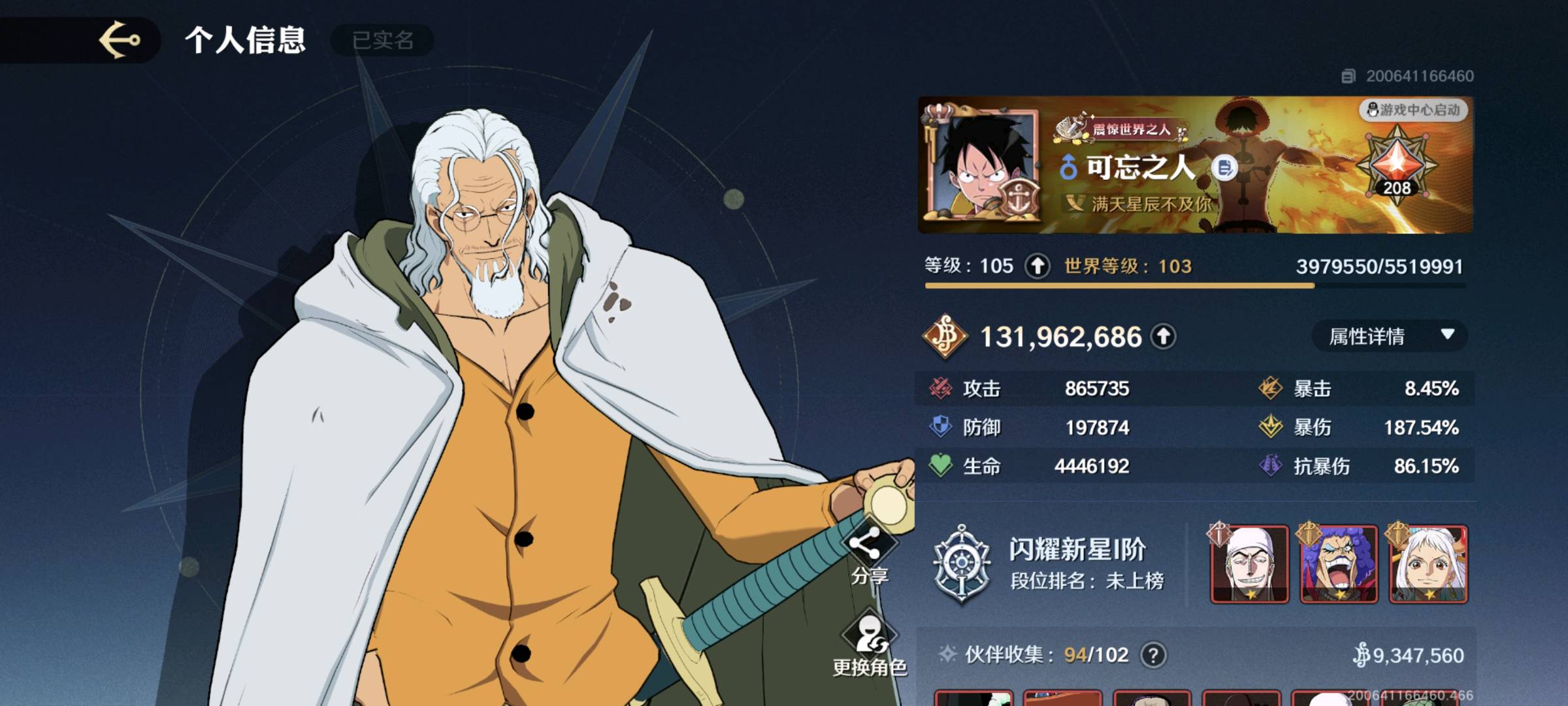 【安卓】 全高招❤️94角色❤️25空岛贝❤️73援护❤️1亿3000万战力❤️全红卡❤️全金卡