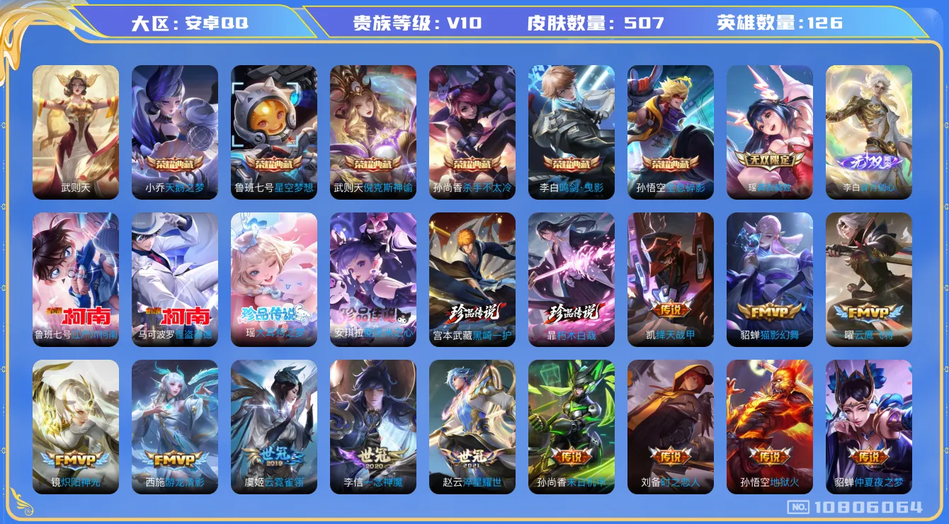 包天便宜✨V10 521皮6典藏6珍品2无双54传说真我赫兹(瑶),碎月剑心天鹅之梦,星空梦想,倪克