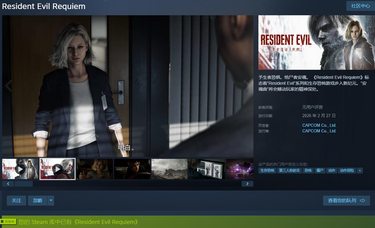 予生者恐惧。给尸者安魂。 《Resident Evil Requiem》标志着“Resident Evil”系列和生存恐怖游戏步入新纪元。“安魂曲”将会撼动玩家的精神深处。