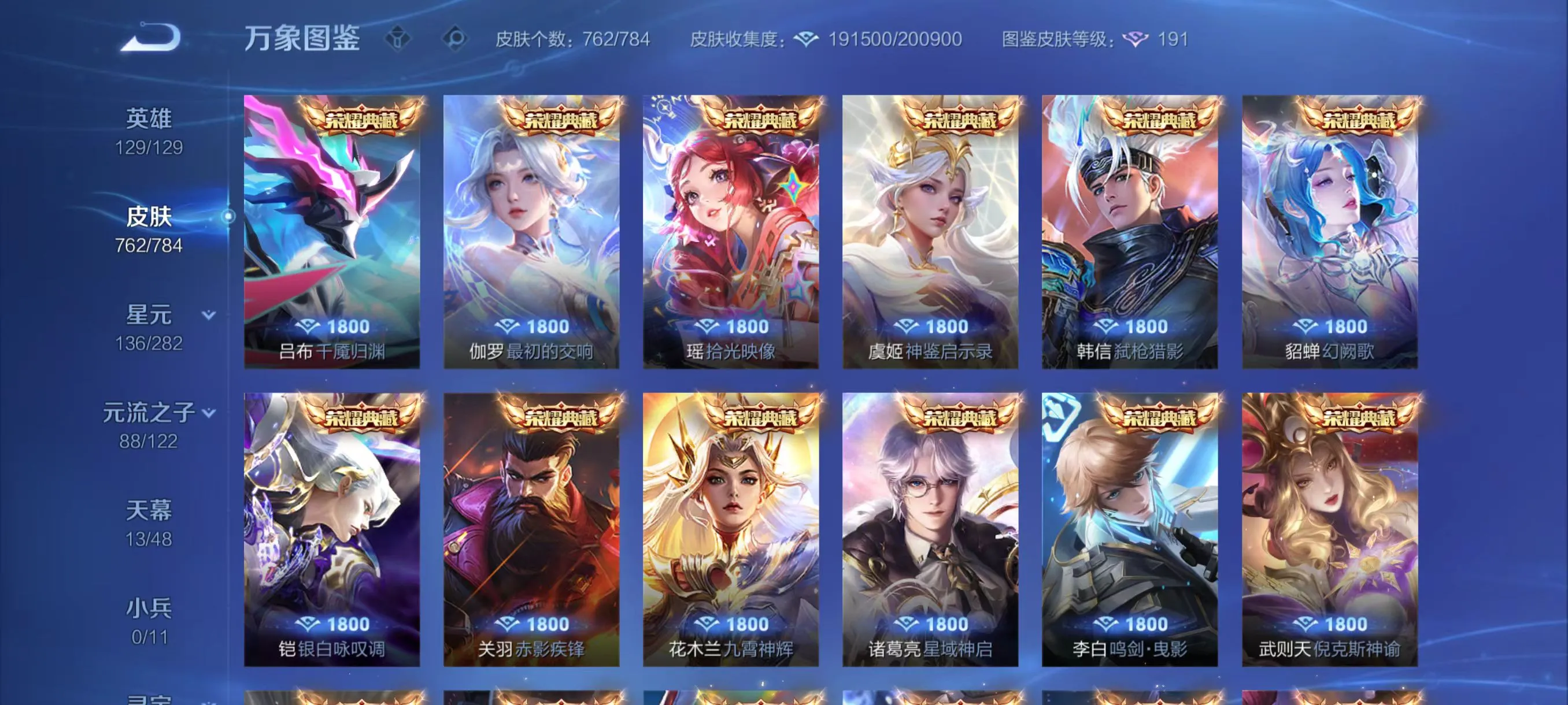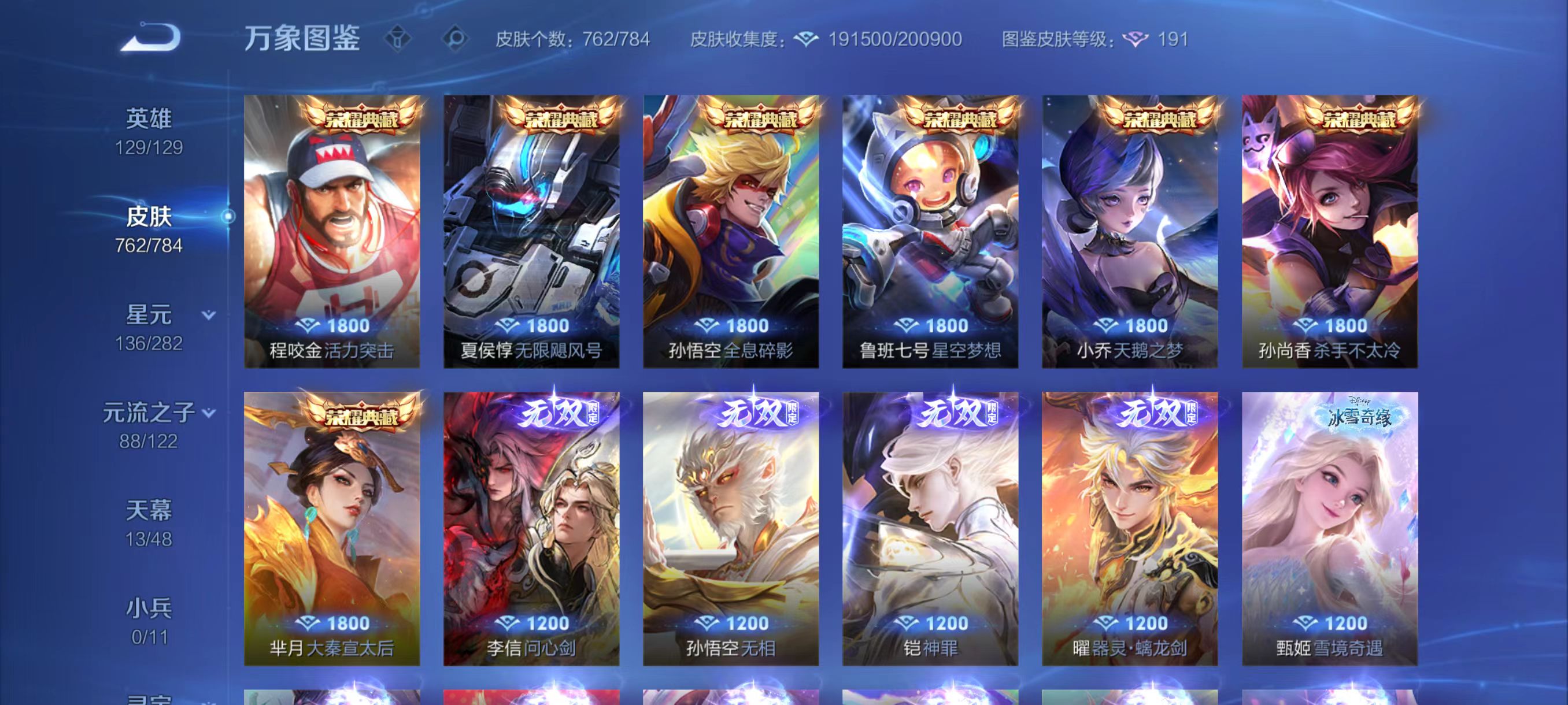 历小国标铠✨V10 762皮19典藏139传说13无双9珍品✨问心剑✨无相✨神罪