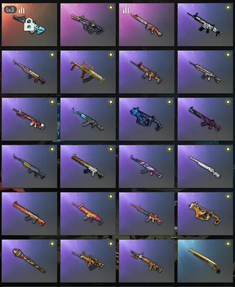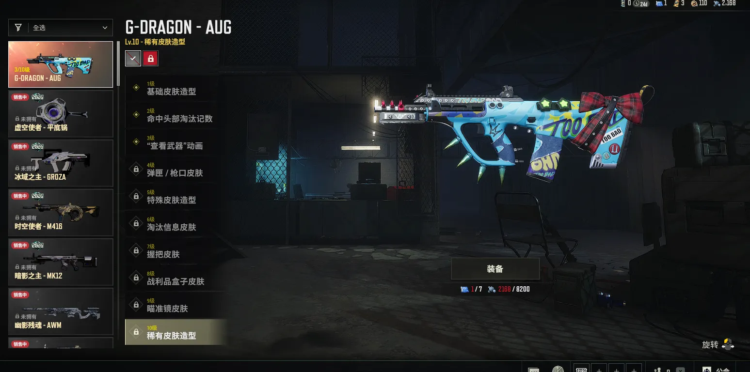 4级权志龙AUG✅毒液762✅雪国风光M4✅镀金AK✅珠雀之灵98k✅大理石宝藏ACE