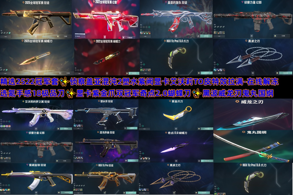 精选2522冠军18刀✨显卡紫金爪双冠军奇点蝴蝶刀黑波威龙刃✨侦察盖亚混沌2塑水紫阙显卡艾沃莉TO皮