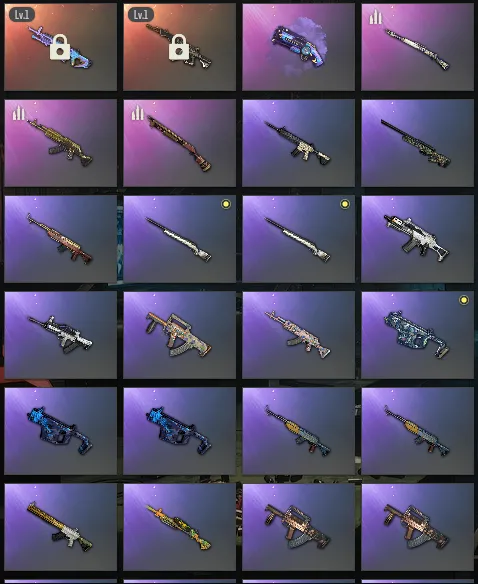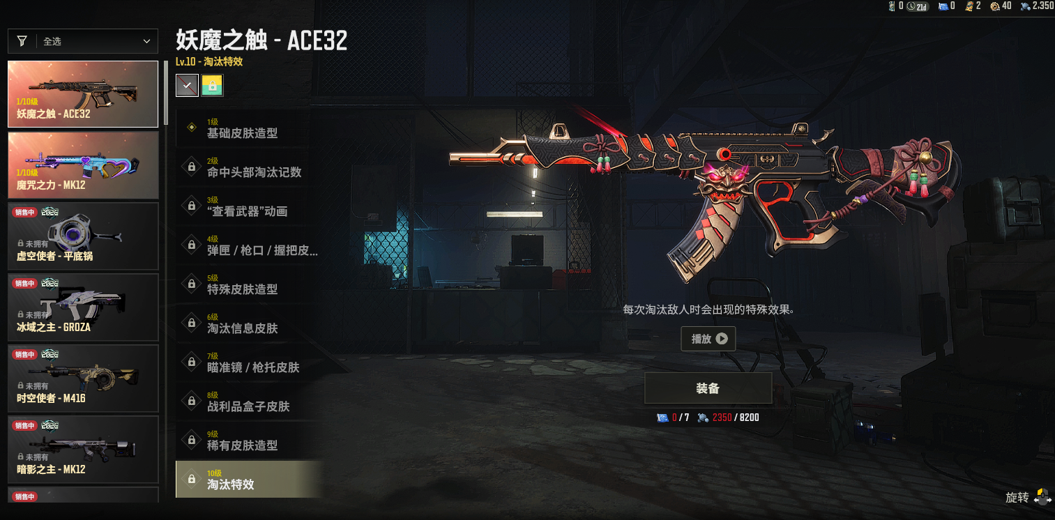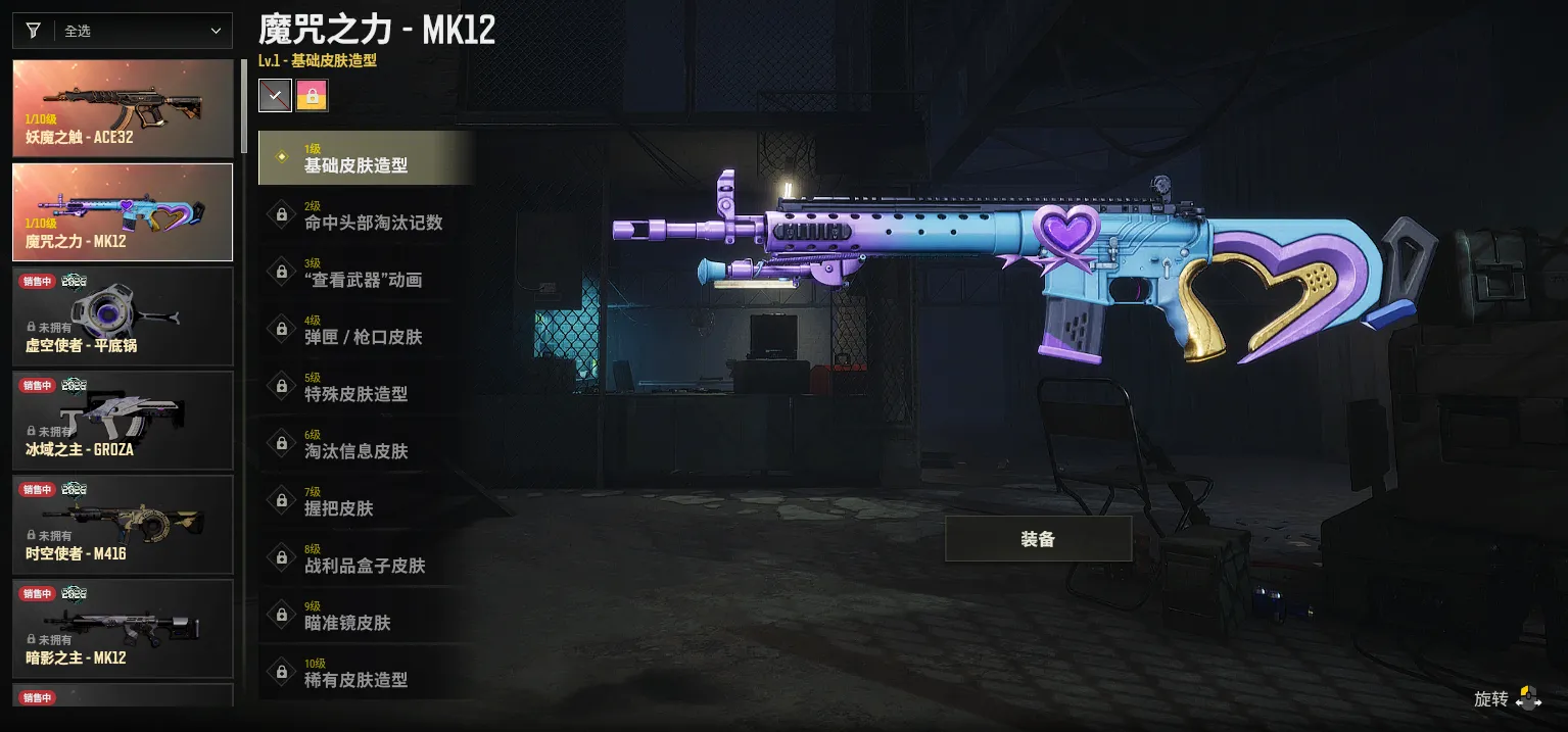 1级妖魔ACE✅1级魔咒MK1✅毒液762✅雪国风光M4✅镀金AK✅珠雀之灵98k✅大理石宝藏ACE