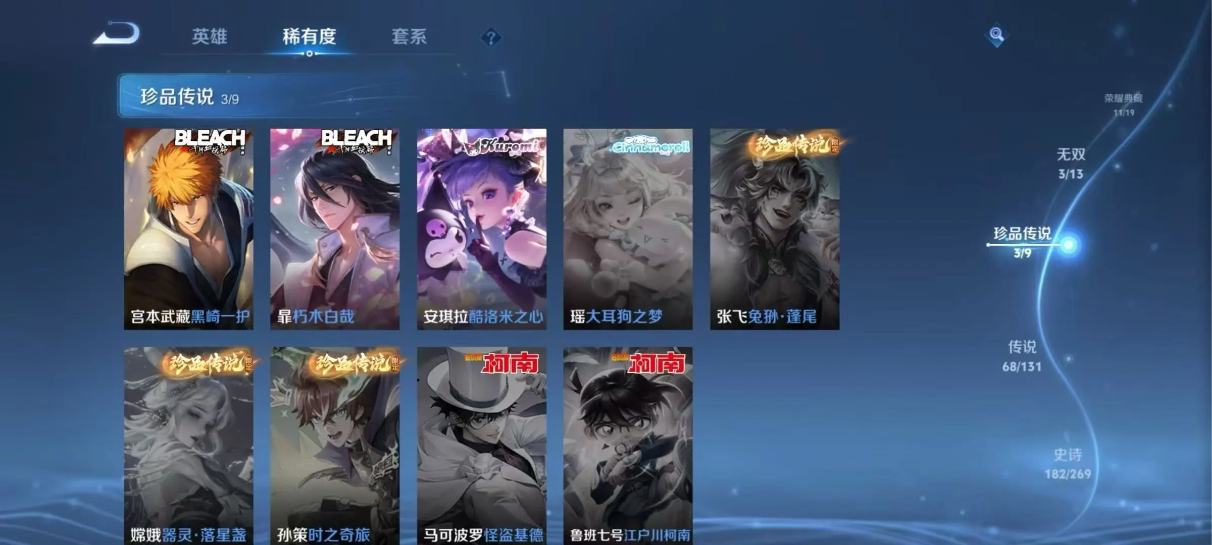 【安卓】 ✨包天特价✨V10 539皮11典藏3无双3珍品68传说✨天机白泽 群星魔术元 朽木白哉 黑崎一护