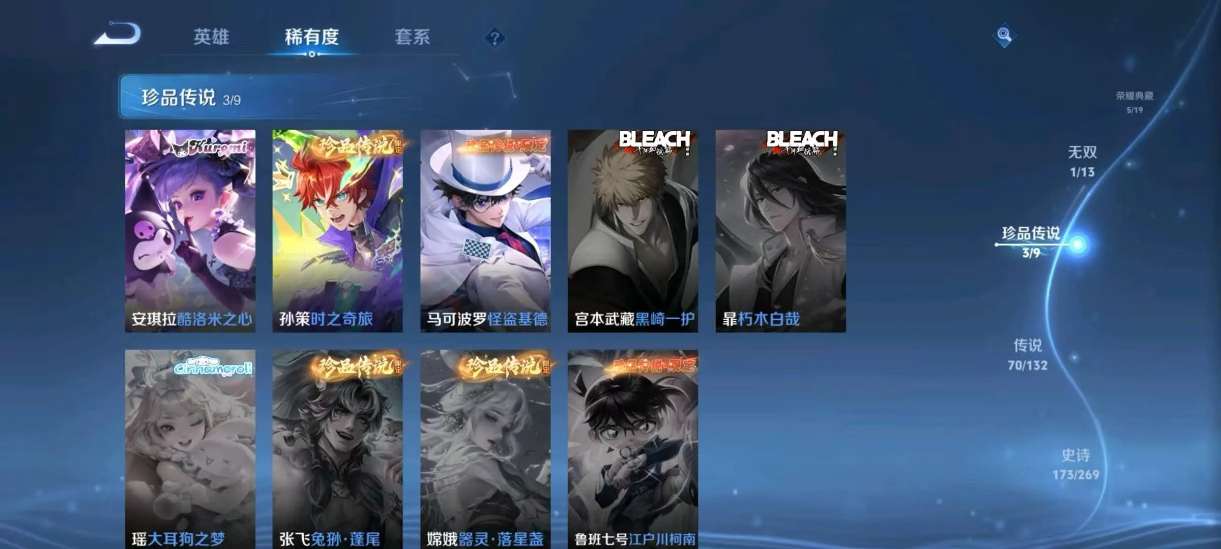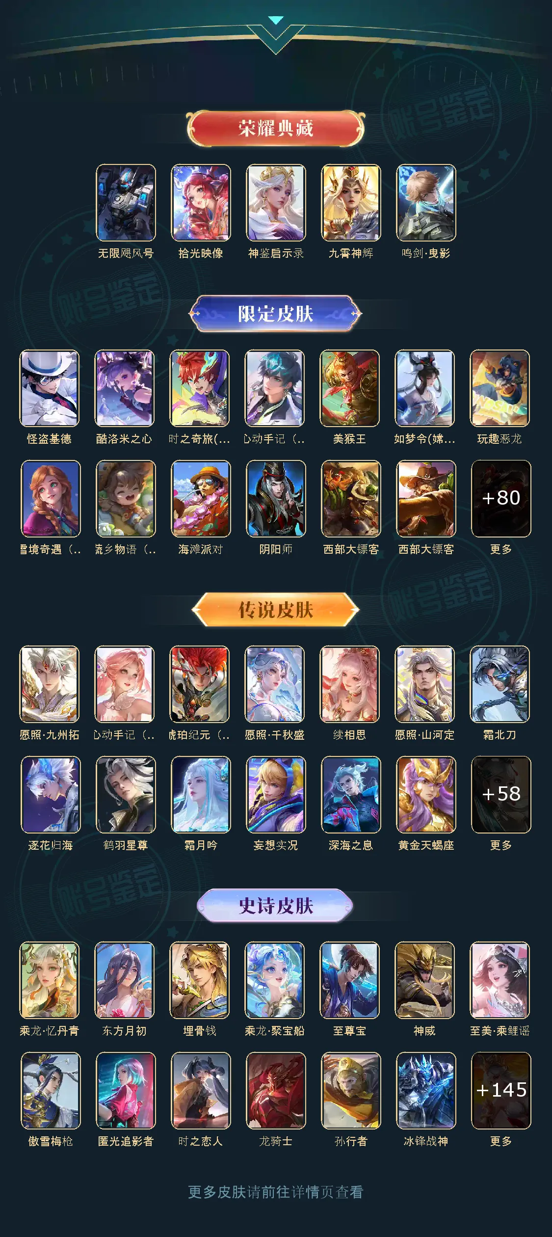 【安卓】 ✨包天特价✨V10 539皮5典藏3珍品1无双70传说✨天机白泽 怪盗基德 酷洛米之心 时之奇缘