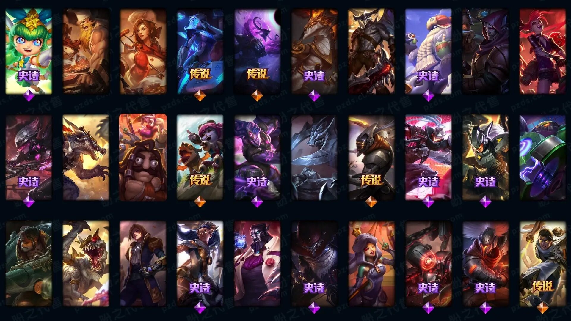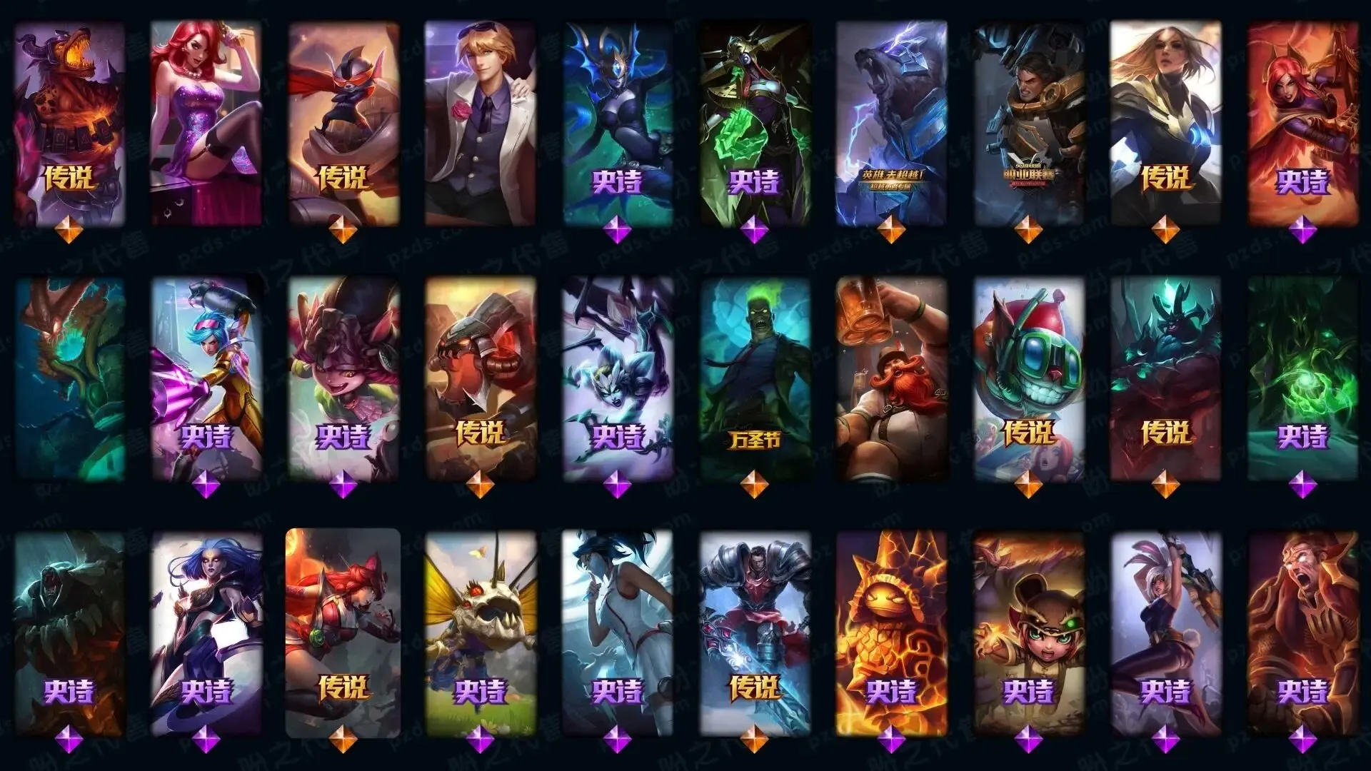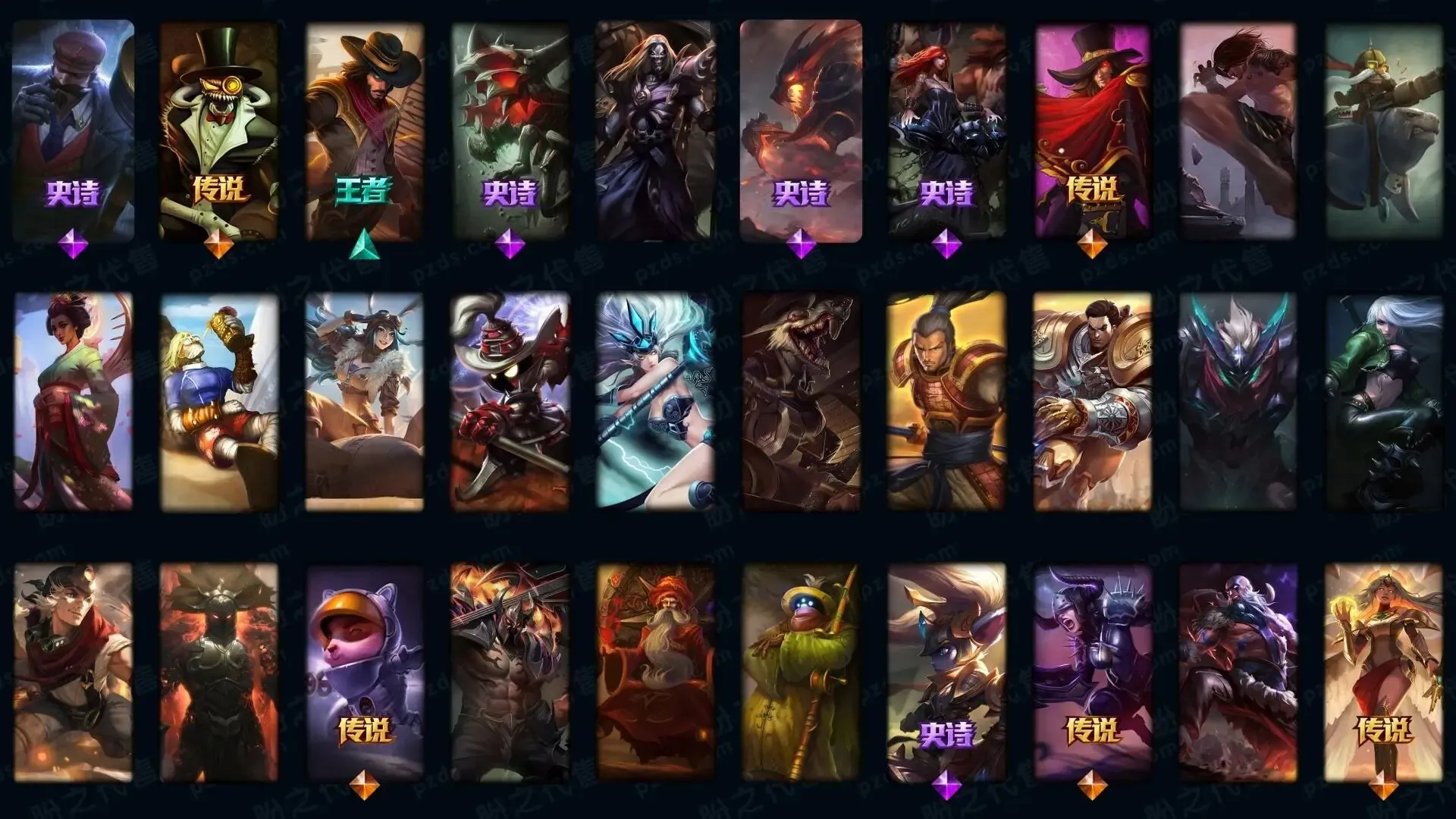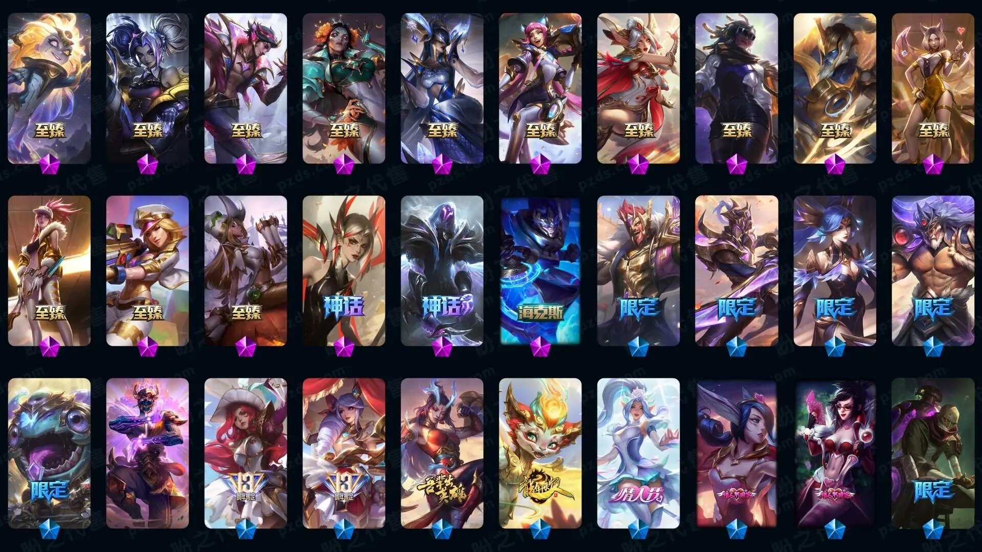 1939皮肤〓可排位妹子号白银〓全英雄〓57神话〓21臻彩〓226炫彩〓殿堂传奇〓至臻霞洛潘森泽丽烈