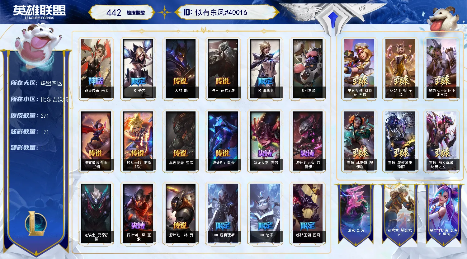 1939皮肤〓可排位妹子号白银〓全英雄〓57神话〓21臻彩〓226炫彩〓殿堂传奇〓至臻霞洛潘森泽丽烈娜塔佐伊塞纳卡莎海克斯〓生肖套EDG〓黑夜亚索神王星守护暗星源计划
