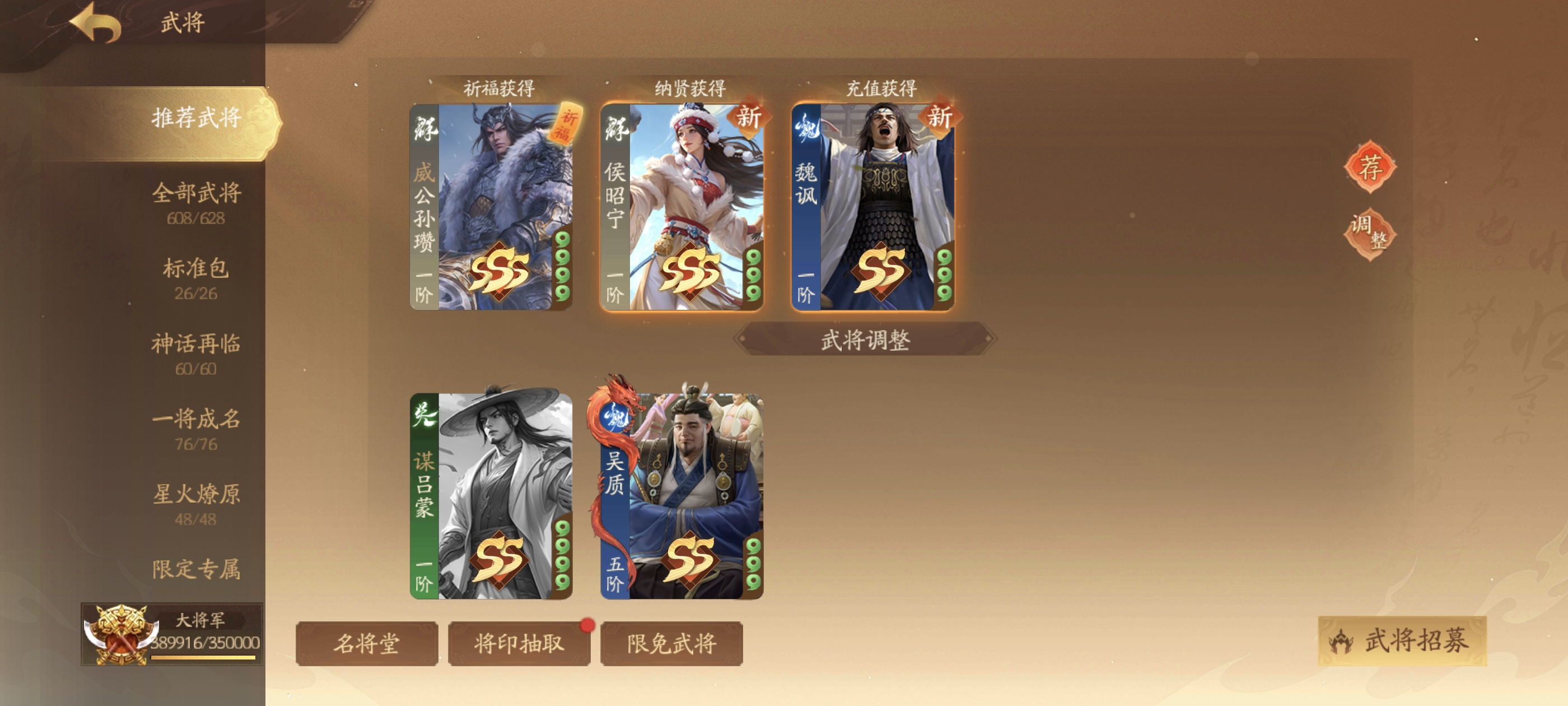 【全平台】 伪全扩大将军608武将四武庙+大谋灯+威灯+钟灵灯+隐玉灯+阎象魏讽侯昭宁