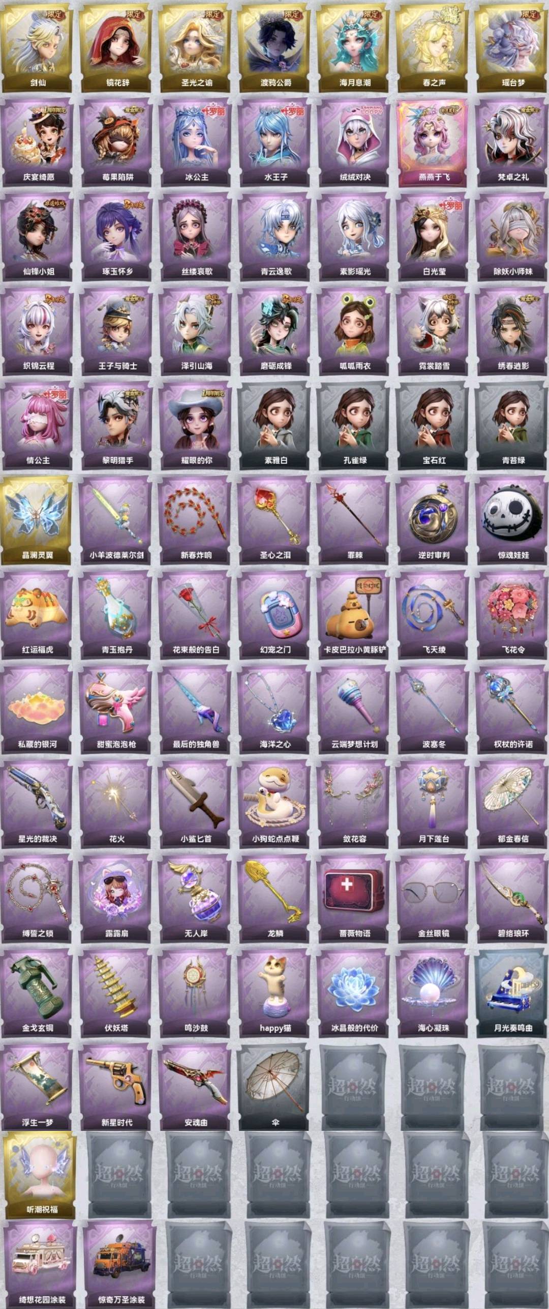 【全平台】 7金24紫晶澜灵翼剑仙瑶台梦圣光之谕渡鸦公爵春之声海月息潮镜花辞仙锋小姐泽引山海绣春逍影白光莹情公主