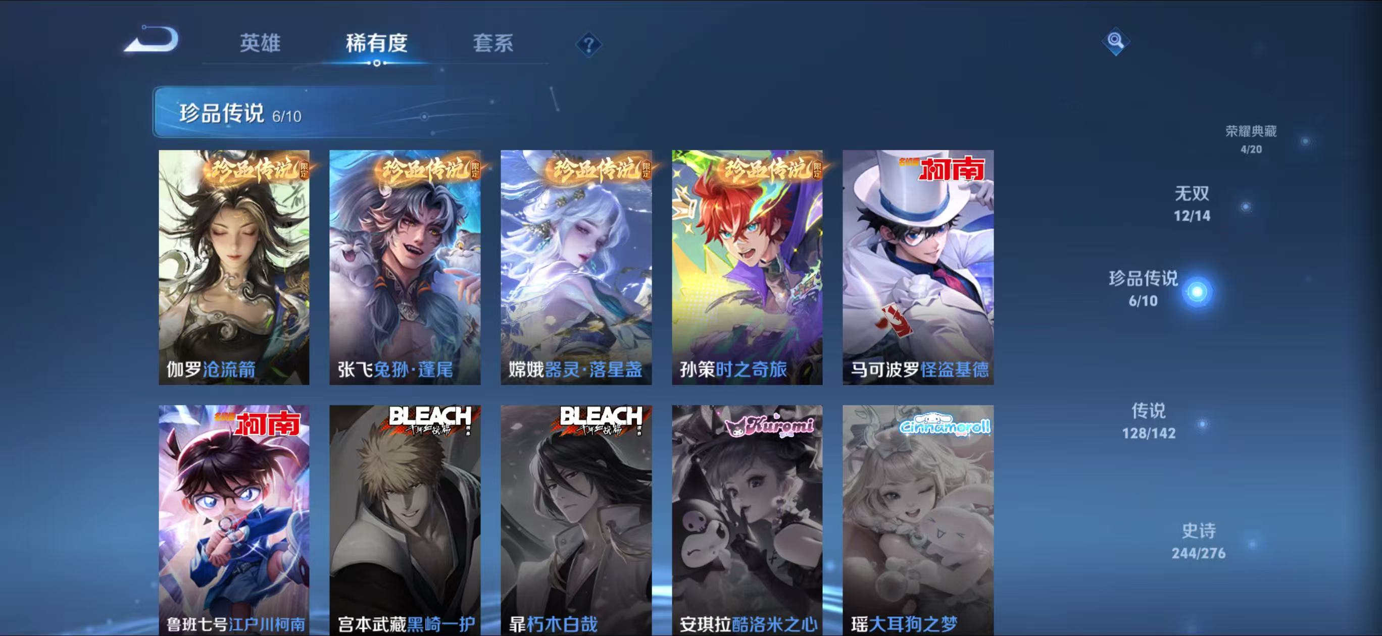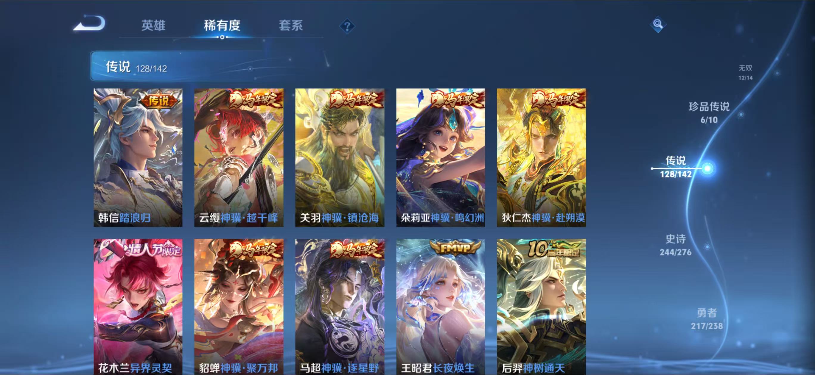 v10无双贵族 695皮3金标 马年全套12无双6珍品传说4典藏128传说7星传说
