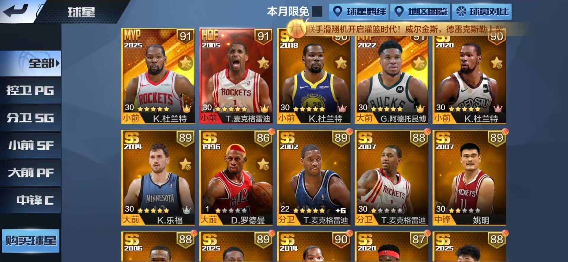 【安卓】 5天选神选典藏麦迪搭配火箭kd