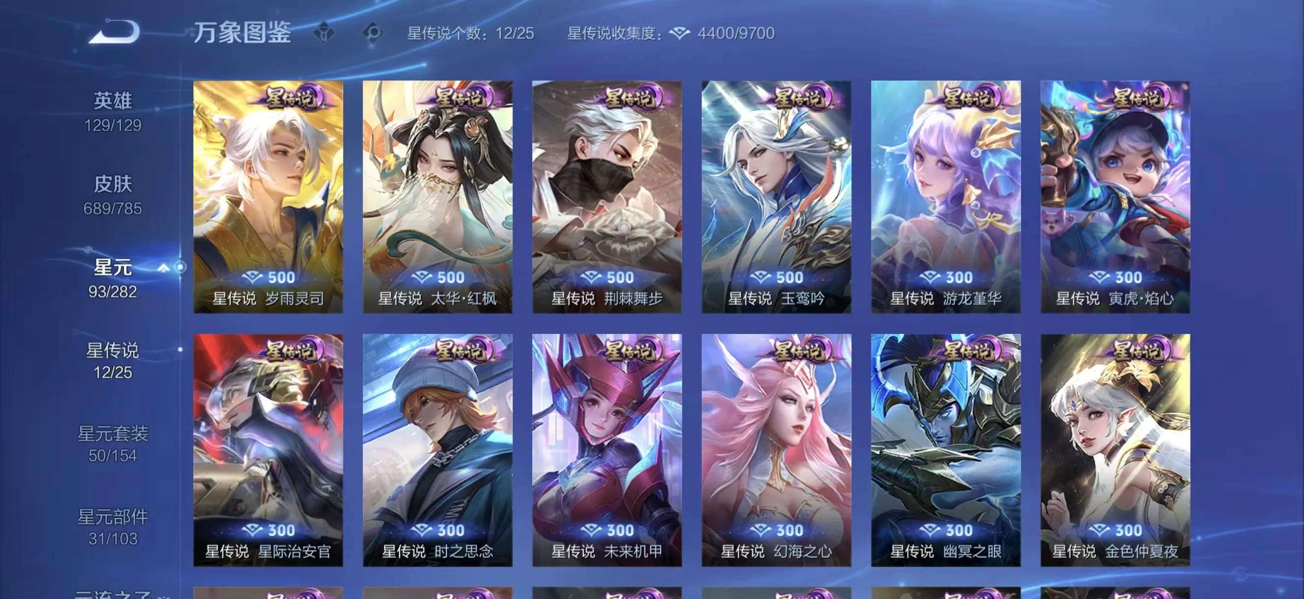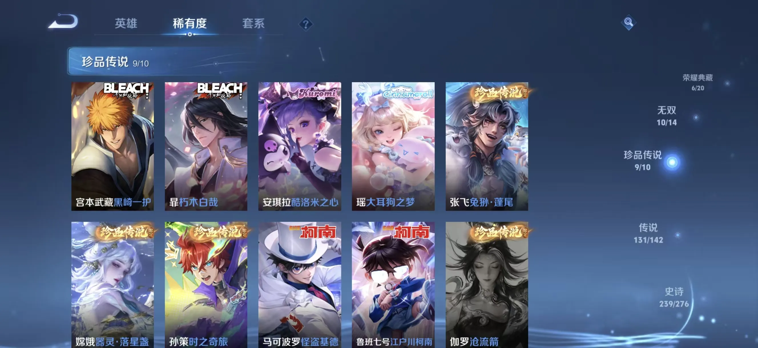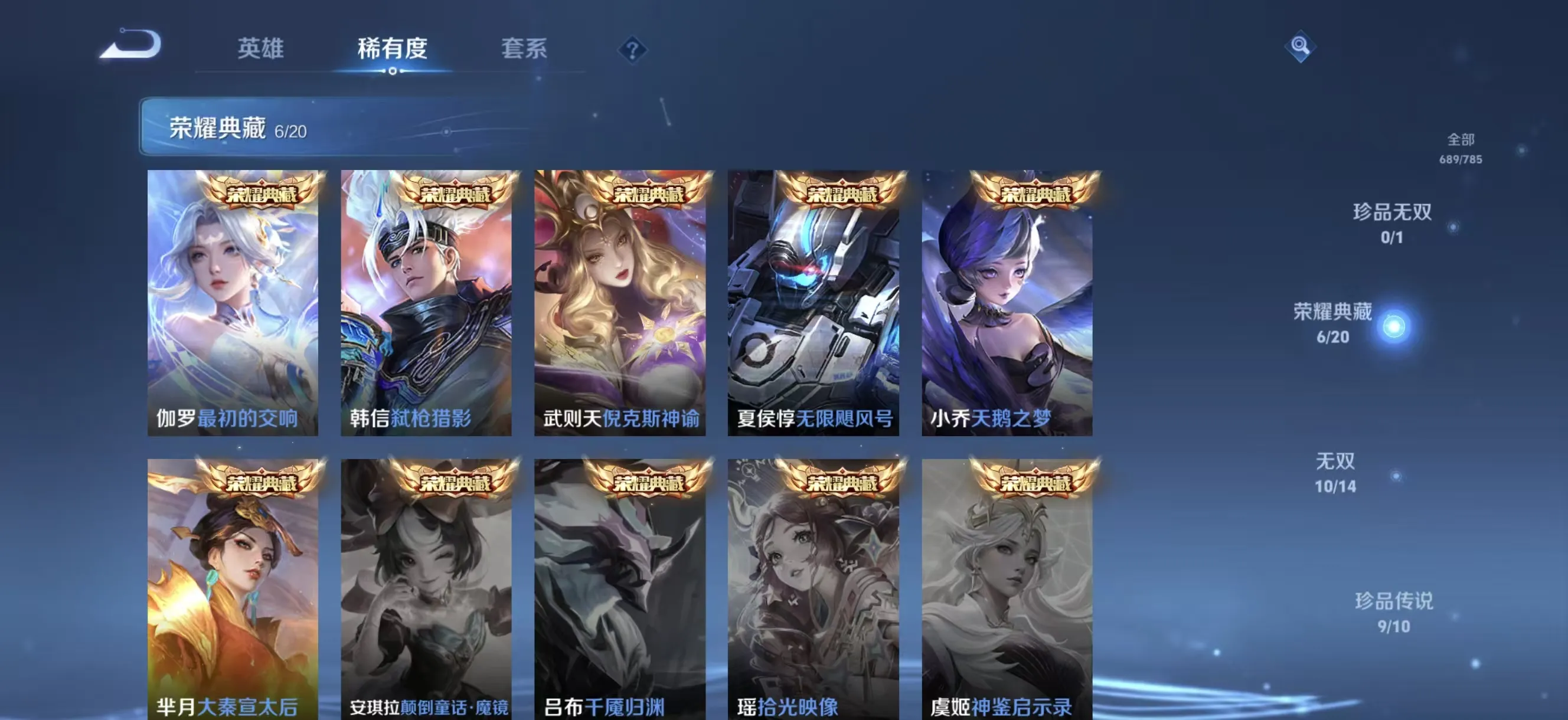 v10 689皮女号金标小乔 马年全套10无双9珍品传说6典藏131传说12星传说