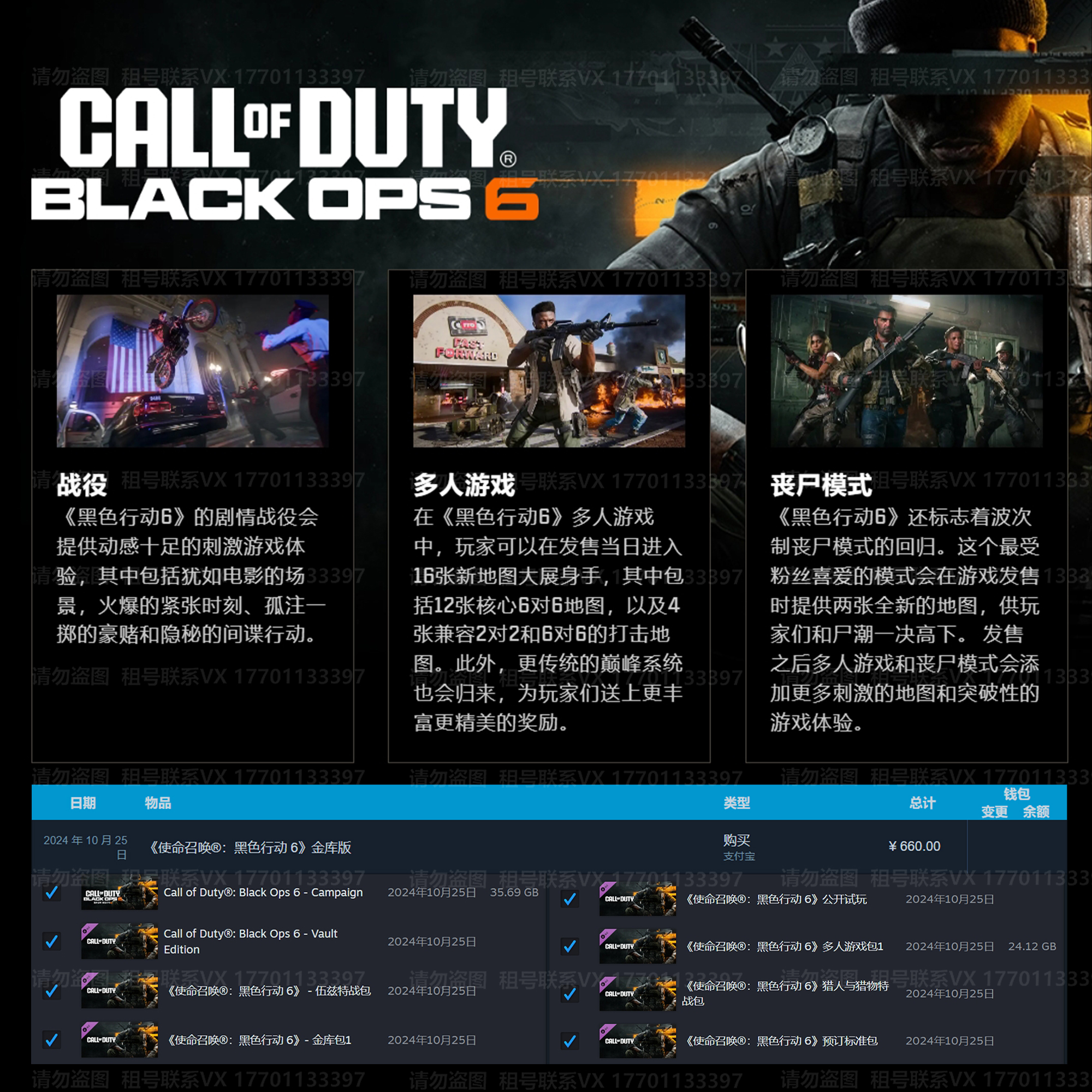 使命召唤21:黑色行动6✨688金库版❤️包天包夜超划算♋30多个枪械皮肤♋角色几乎全部解锁✅高等级