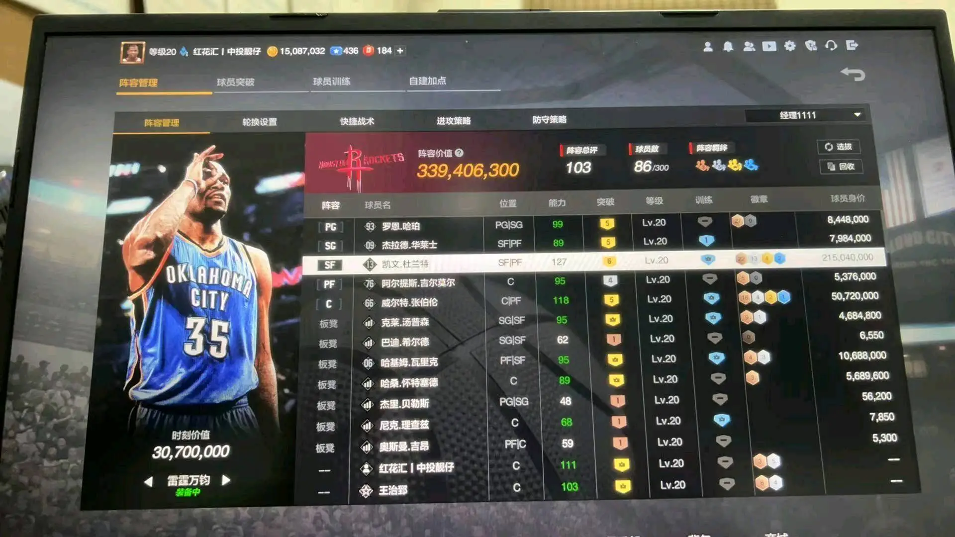 角色球员3级/王朝模式段位