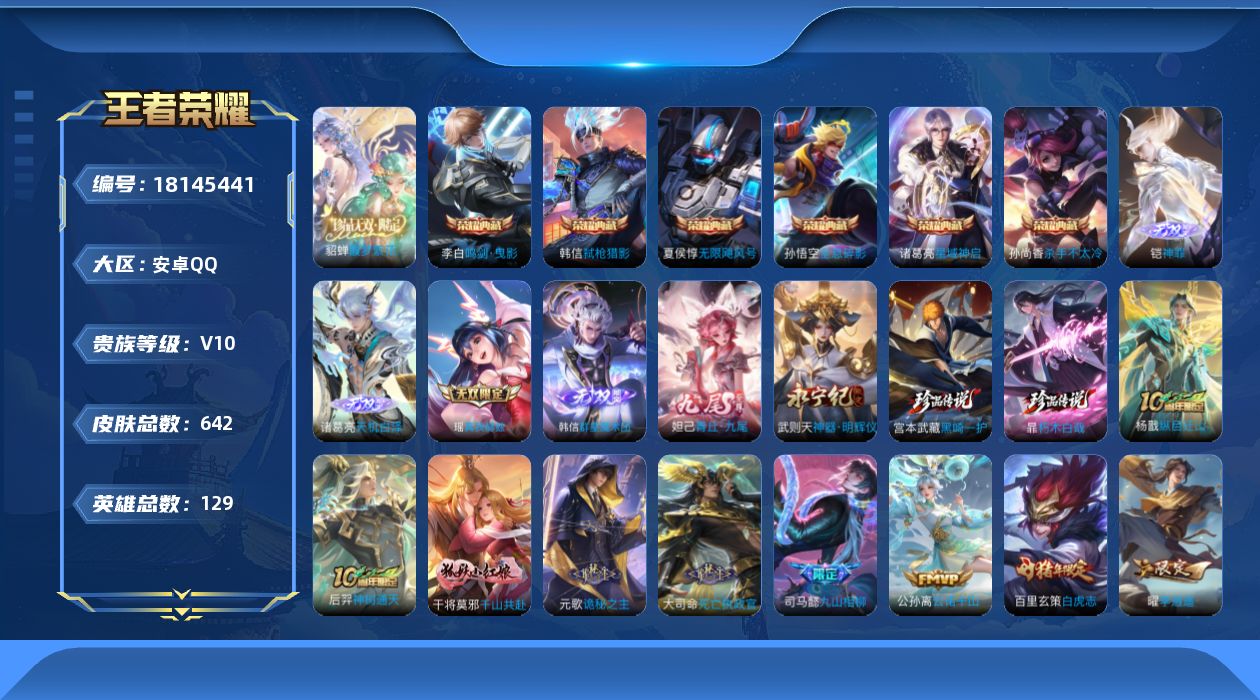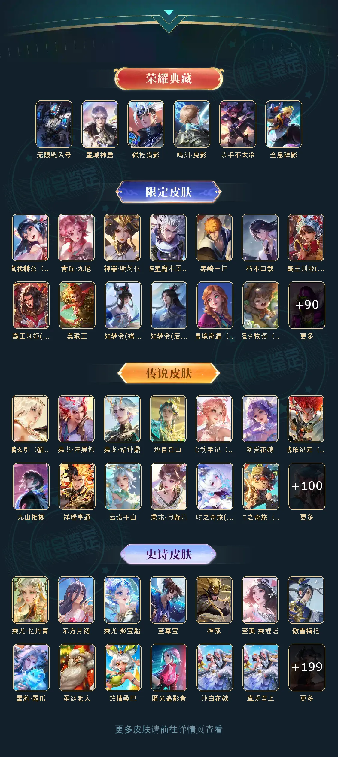 小魔方 金标百里玄策 金标裴擒虎 金标公孙离 金标铠 金标诸葛亮 巅峰打野 V10 642皮6典藏113传说6无双2珍品传说1珍品无双 【珍品传说皮肤】:朽木白哉,黑崎一护【珍品无双皮肤】:馥梦繁花【无双皮肤】:神罪,群星魔术团,天机白泽,瑶真我赫兹,青丘·九尾,神器·明辉仪【荣耀典藏】:无限飓风号,弑枪猎影,星域神启,杀手不太冷,鸣剑·曳影,全息碎影【优质限定皮肤】:至美·乘鲤谣,山海·琳琅生,山海·苍雷引,山海·炽霜斩,无双飞将,云中君时之祈愿,瑶时之祈愿,祈雪灵祝,武圣,白虎志,神威,至尊宝,天魔缭乱,凤求凰【传说皮肤】:纵目迁山,心动手记,神树通天,群星魔术团,千山共赴,诡秘之主,死亡执政官,九山相柳,云诺千山,祥瑞亨通,鸣野蒿,战鼓燎原,曦玄引,落雪白狼,曦玄引,乘龙·铭钟鼎,乘龙·问璇玑,乘龙·淬吴钩,琥珀纪元,琥珀纪元,觅芳踪,逐花归海,小动物乐团,霜月吟,夜礼服假面,永恒水手月亮,至美·化雀舞,时之奇旅,时之奇旅,影龙天霄,遇见神鼓,惊梅引,鹤归松栖,妄想奇谈,妄想实况,灼幽烈阳,鹤羽星尊,电玩·雷克斯,追逃游戏,追逃游戏,百相守梦,记忆之芯,浮生妄,画中仙,燃星之曲,无限倾心,无限倾心,炽翼辉光,永曜之星,山海·琳琅生,山海·苍雷引,齐天大圣,山海·炽霜斩,怒海麟威,诗剑行,神器·狴犴令,绯月行,星穹之声,碎云,枫霜尽,前尘镜,音你闪耀,深海之息,无尽星芒,无双飞将,挚爱之约,挚爱花嫁,启示之音,花朝如约,补天,末日机甲,瑶时之祈愿,寅虎·瑞焰,寅虎·赤拳,异界灵契,遇见胡旋,淬星耀世,乞巧织情,游龙清影,音你心动,音你心动,李逍遥 ,飞鸢探春,默契交锋,时雨天司,祈雪灵祝,绛天战甲,炽阳神光,启明星使,零号·赤焰,黄金白羊座,黄金狮子座,武圣,白虎志,云鹰飞将,一念神魔,冠军飞将,时之恋人,天魔缭乱,太华,凤求凰,猫影幻舞,仲夏夜之梦,武陵仙君,黄金射手座,胖达荣荣,久胜战神,云霓雀翎,海洋之心,末日机甲,地狱之眼,超时空战士,地狱火
