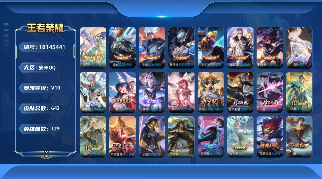 【安卓】 包天便宜✨v10 642皮 6典藏113传说6无双2珍品馥梦繁花 小魔方 金标百里玄策 金标裴擒虎